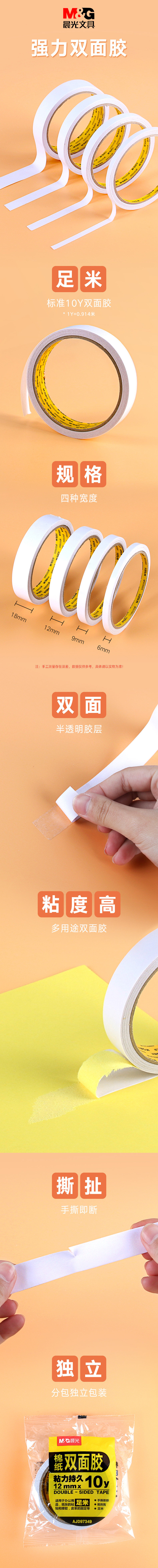 B晨光双面胶高粘度纳米纸胶带幼儿园手工超薄不留痕固定墙面棉纸胶批发胶带儿童易可撕贴学生用手工贴文具用品