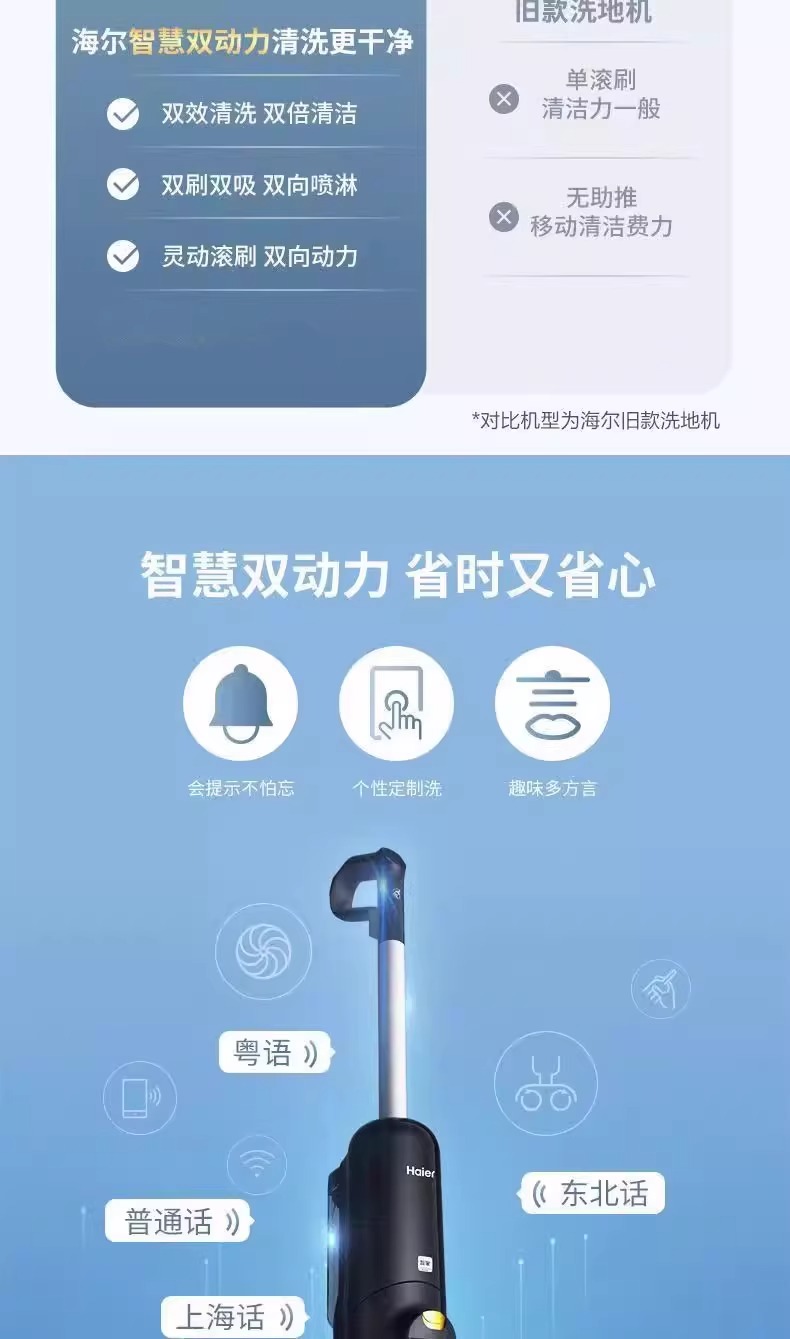 海尔智能家用洗地机双动力无线吸拖洗一体除菌正品E9-ProU1