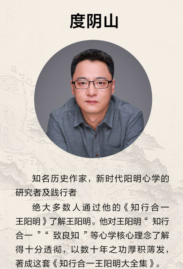 度阴山,人民大学史学硕士、三智书院阳明研究院院长,知名历史作家《帝王师:刘伯温》《知行合一王阳明(1472-1529)》《知行合一王阳明2:四句话读懂阳明心学》《曾国藩:又笨又慢平天下》《帝王师:张居正》作者。
