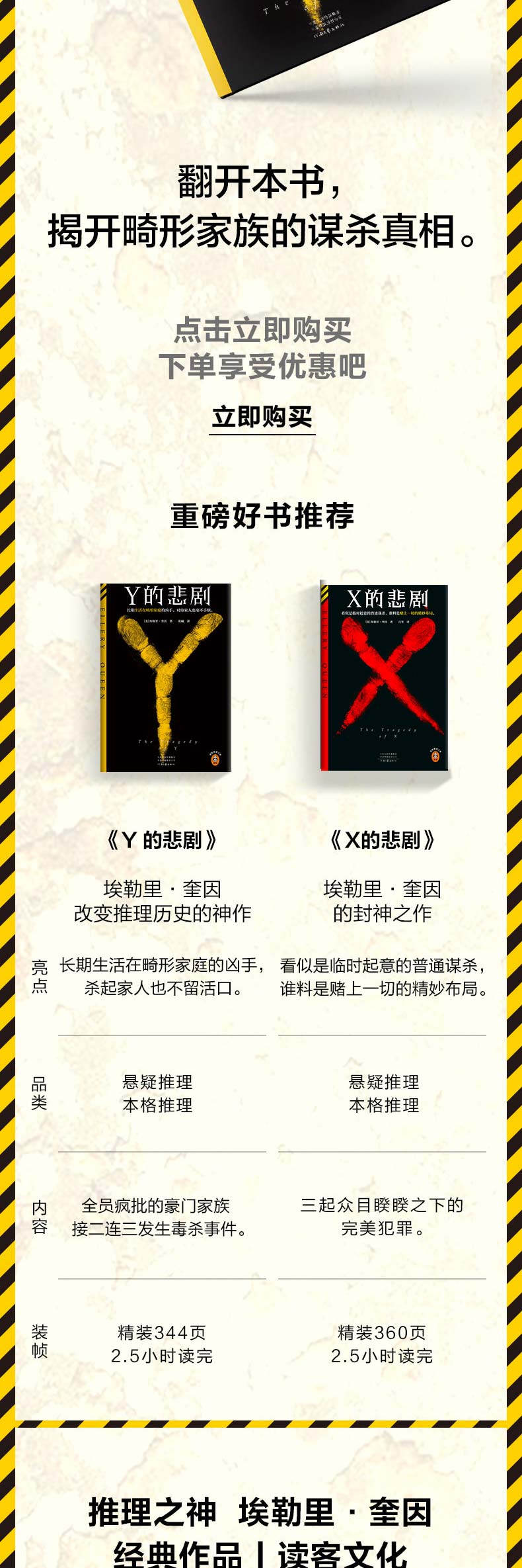 ◆《Y的悲剧》是豆瓣推理小说Top 100!阿加莎直接用代表作向本书致敬!结局极其震撼。