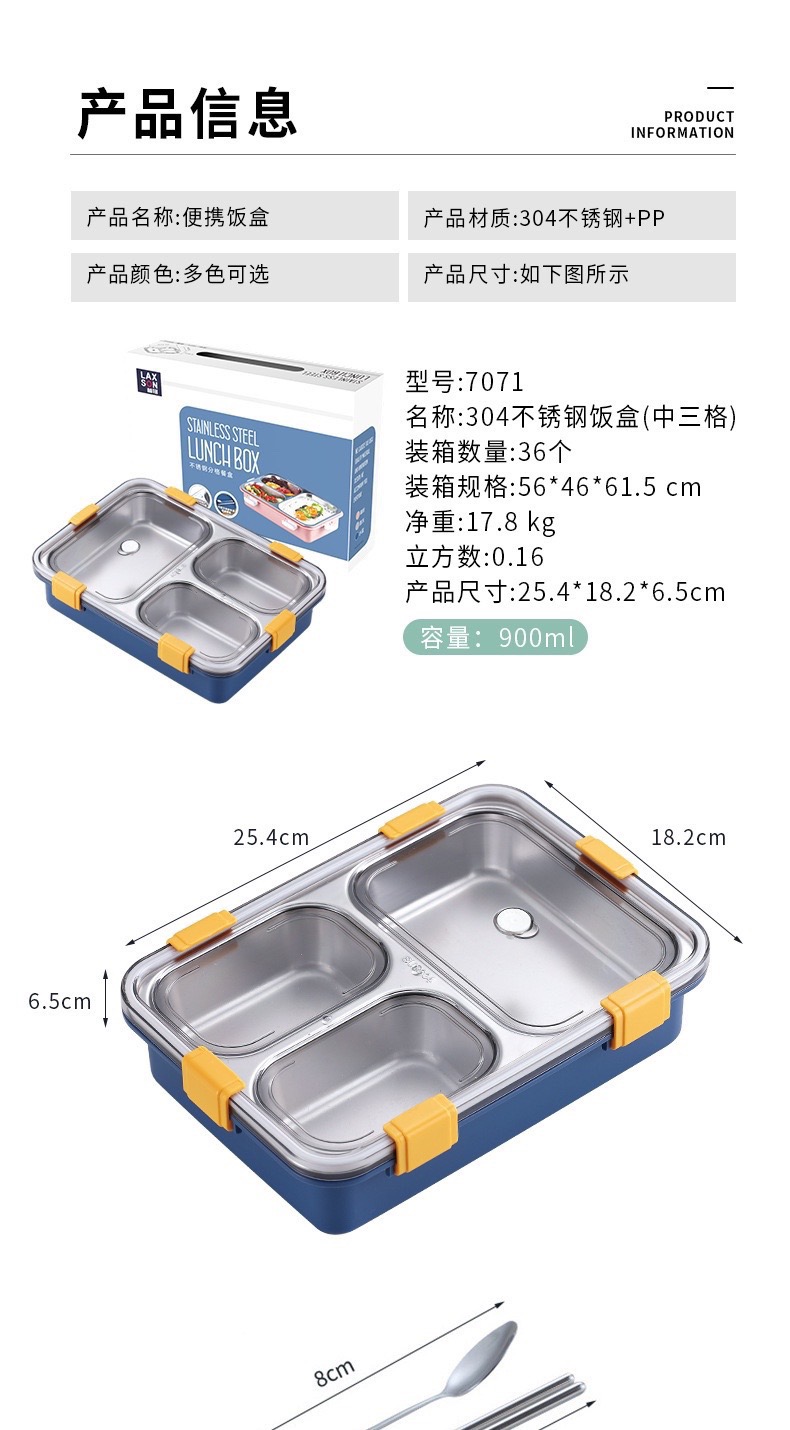 LX-7071三格304不锈钢饭盒900ML(粉色)