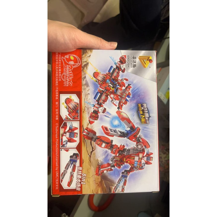 潘洛斯690026奥特曼8合2超人机甲飞船儿童拼装小颗粒积木玩具礼物