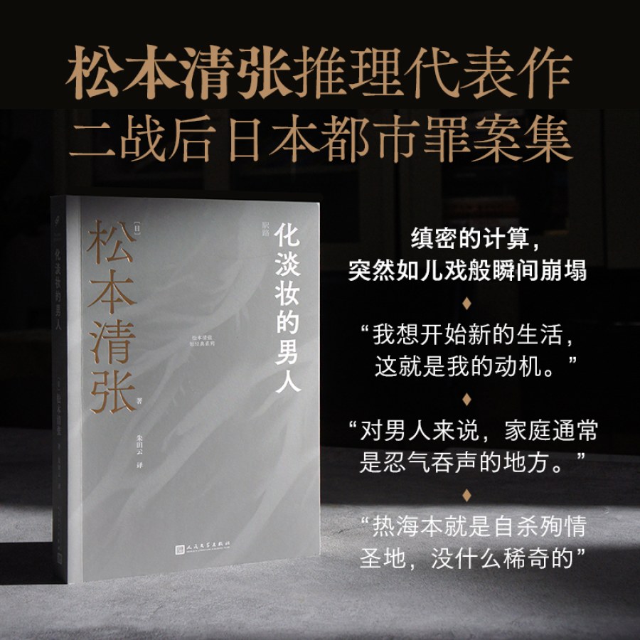 《化淡妆的男人》是以日本战后城镇崛起为背景的侦探故事集。书中收录的10个故事涵盖政坛、官场、商界乃至学术界,其中多部作品如《驿路》等已成为松本清张代表作。这些故事中多次出现某种角色:政府部门、银行和大企业的副科长。在松本清张笔下,他们大多毕业于普通大学,没有背景,肯做实事、业务熟练,“在太阳照不到的阴冷角落里暗自萎靡”,一旦受到巨大的诱惑,早已放弃的出人头地想法会回春般在心头燃起,同时在精神上被强行灌输某种因果关系……上世纪五十年代社会派推理,新闻报道般的冷酷笔触,如今读来仍真实可感,如照镜子。