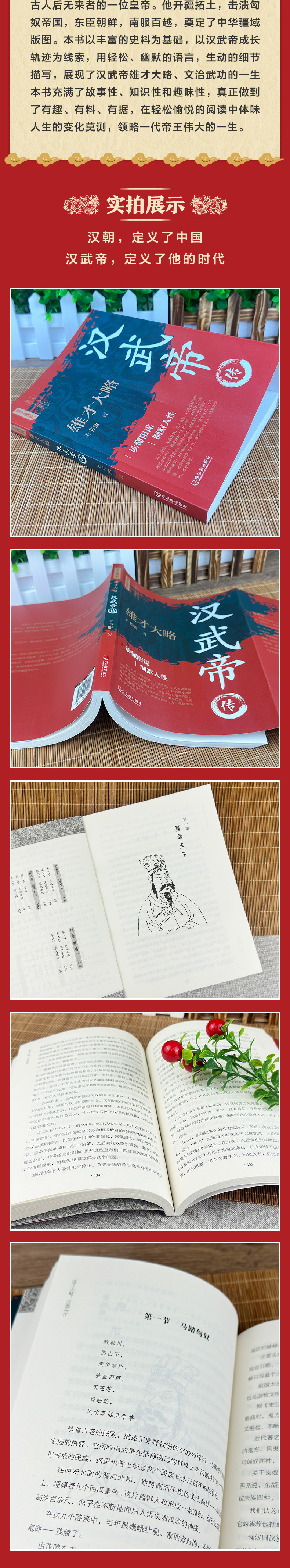 在中国历代帝王中,汉武帝刘彻堪称是前无古人后无来者的一位皇帝。他开疆拓土,击溃匈奴帝国,东臣朝鲜,南服百越,奠定了中华疆域版图。本书以丰富的史料为基础,以汉武帝成长轨迹为线索,用轻松、幽默的语言,生动的细节描写,展现了汉武帝雄才大略、文治武功的一生。本书充满了故事性、知识性和趣味性,真正做到了有趣、有料、有据,符合当下读者喜欢读故事不喜欢读史实的阅读口味,让读者在轻松愉悦的阅读中体味人生的变化莫测,领略一代帝王伟大的一生。