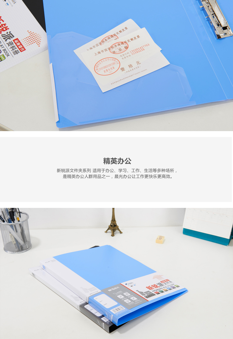 晨光A4新锐派单夹双夹强力文件夹(蓝色)