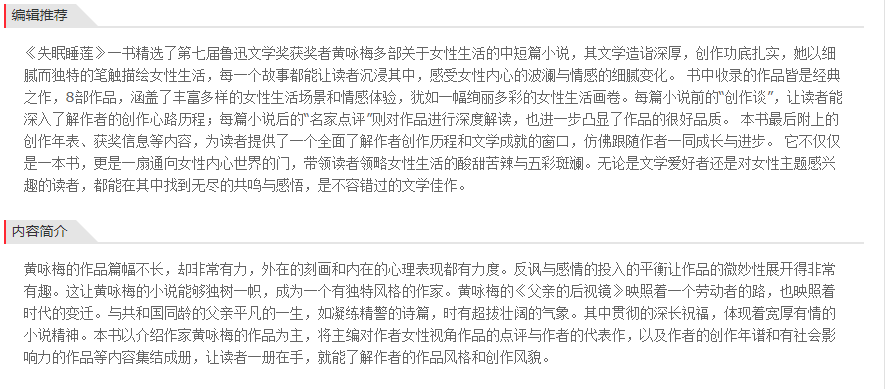 《失眠睡莲》一书精选了第七届鲁迅文学奖获奖者黄咏梅多部关于女性生活的中短篇小说,其文学造诣深厚,创作功底扎实,