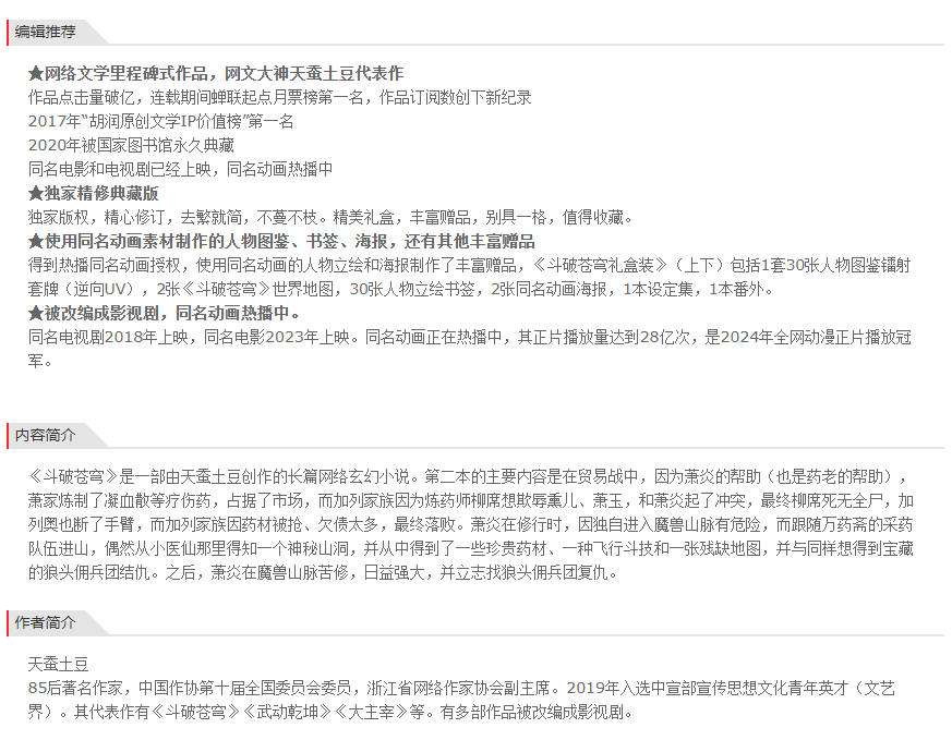 《斗破苍穹》是一部由天蚕土豆创作的长篇网络玄幻小说。第二本的主要内容是在贸易战中,因为萧炎的帮助(也是药老的帮