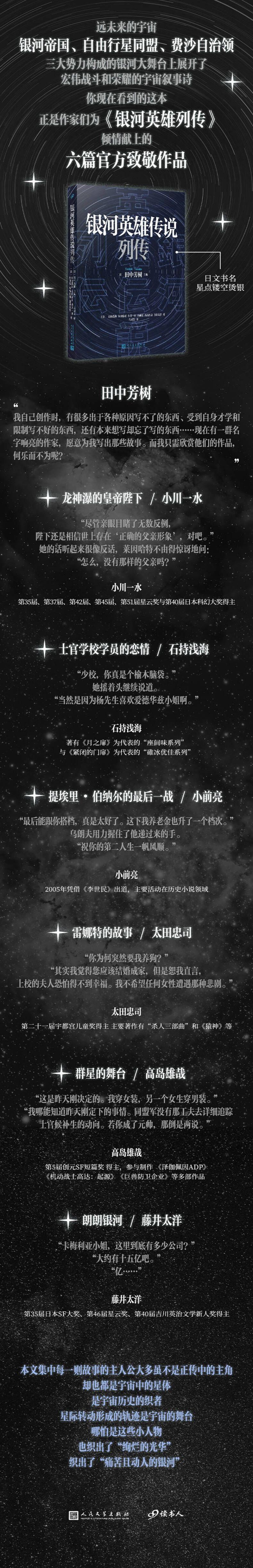 “我的征途是星辰大海!” 你手上的这本书,就是深爱着《银河英雄传说》的作家们倾情献上的六篇官方致敬作品。