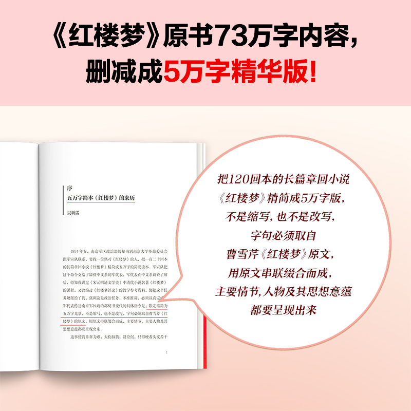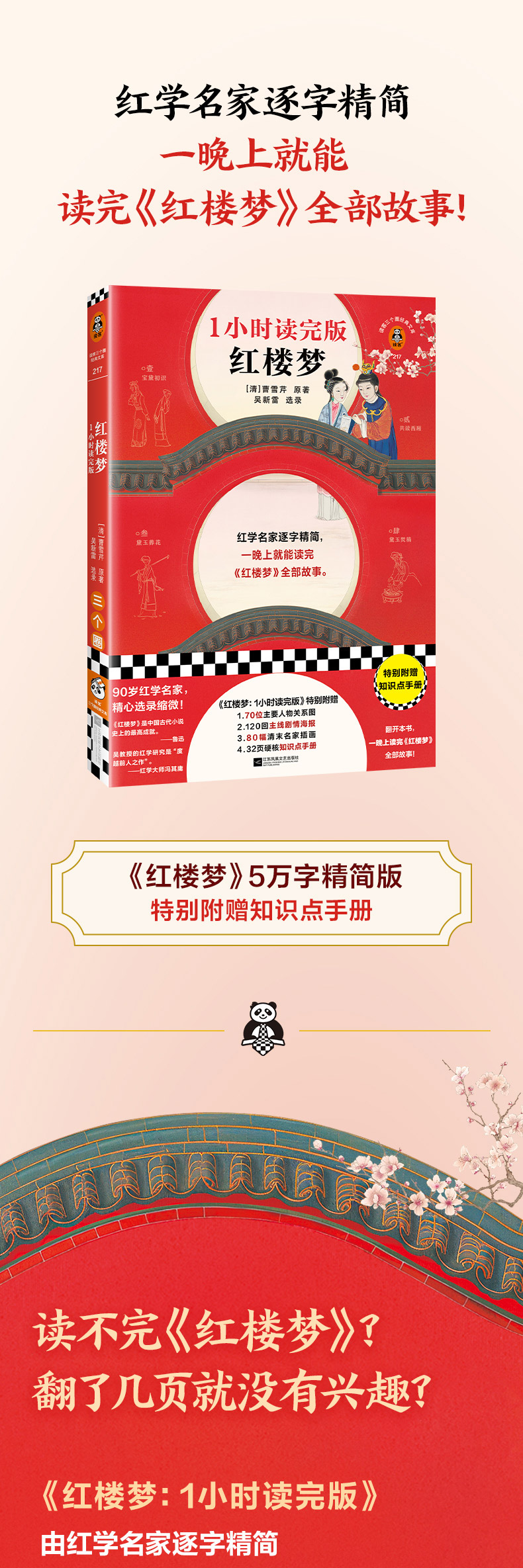 吴新雷教授,当代红学名家,将73万字《红楼梦》缩减成5万字版,重要情节、人物,一字不拉!附赠人物关系表,故事主线图,知识点手册,一晚上就能读完《红楼梦》全部故事!读客熊猫君出品