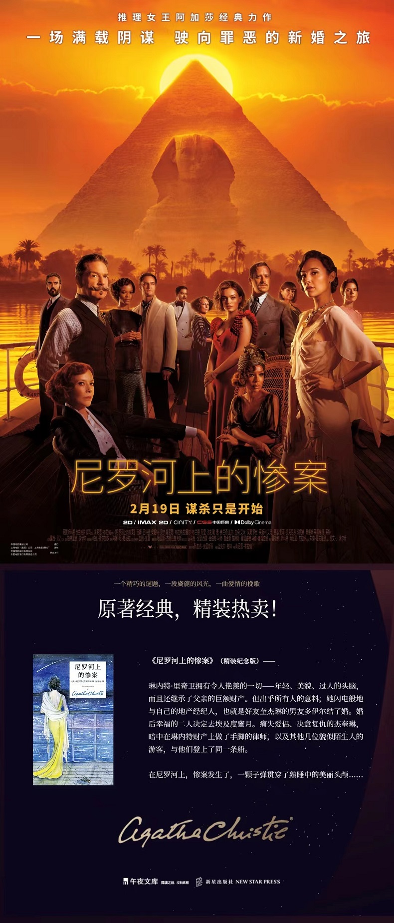 《尼罗河上的惨案》盖尔加朵主演同名电影,阿加莎·克里斯蒂经典悬疑之作!销量仅次于《圣经》和莎士比亚全集,大侦探波洛和马普尔小姐的缔造者!