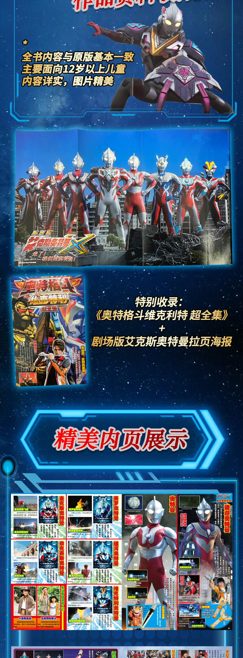 全书内容与原版基本一致,主要面向12岁以上儿童。对《艾克斯奥特曼》《艾克斯奥特曼剧场版》中的出场人物、故事剧情