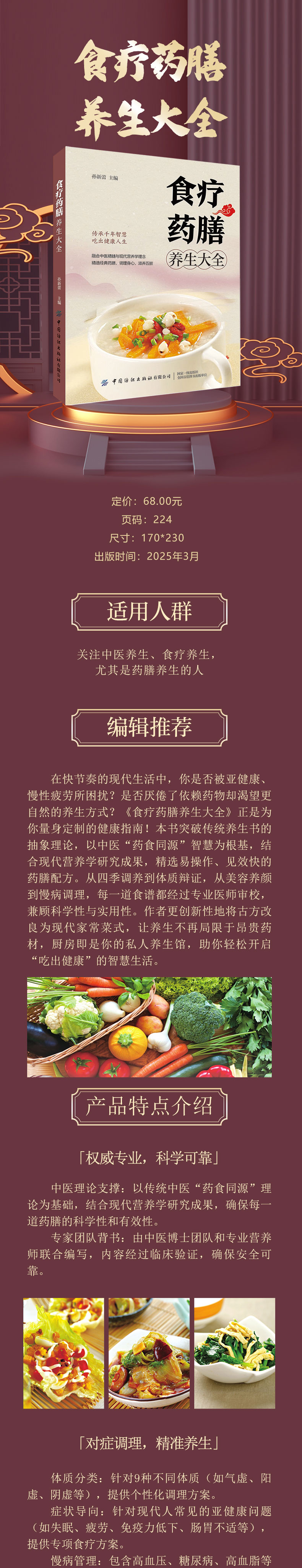 《食疗药膳养生大全》是一本融合中医精髓与现代营养学的食疗宝典和适合全家人的养生指南。我国自古就有“寓医于食”“