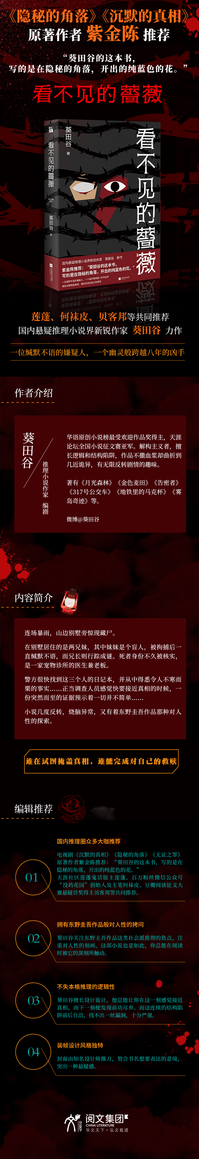 看不见的蔷薇(《沉默的真相》原著作者紫金陈推荐) 紫金陈推荐:“葵田谷的这本书,写的是在隐秘的角落,开出的纯蓝