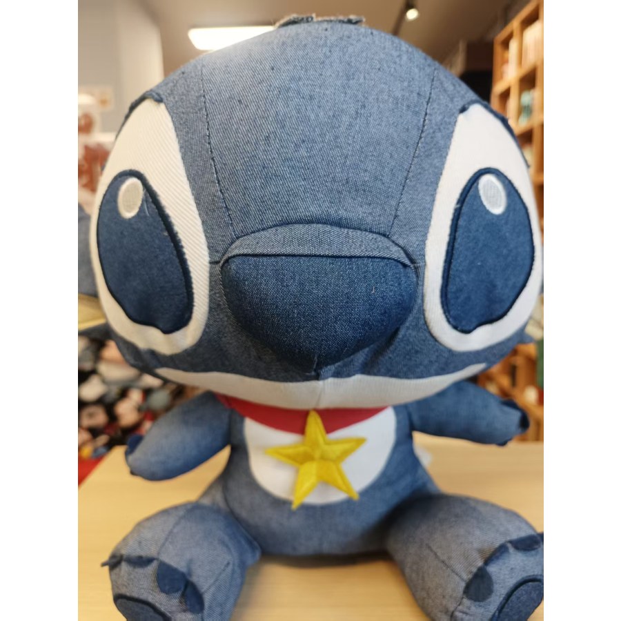 是星际宝贝史迪奇牛仔布毛绒公仔,以经典角色史迪奇为原型,采用牛仔布材质打造独特外观,胸前有黄星、红白装饰,保留角色萌趣特征,是动漫周边,可作收藏、装饰或礼物,受粉丝喜爱 。