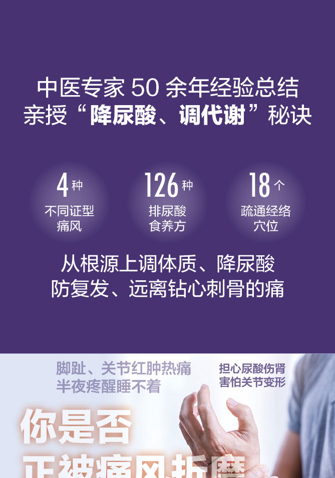 降尿酸,调代谢 通风断根 126道食养方+4大证型 调理,比西药温和,比忌口 有效