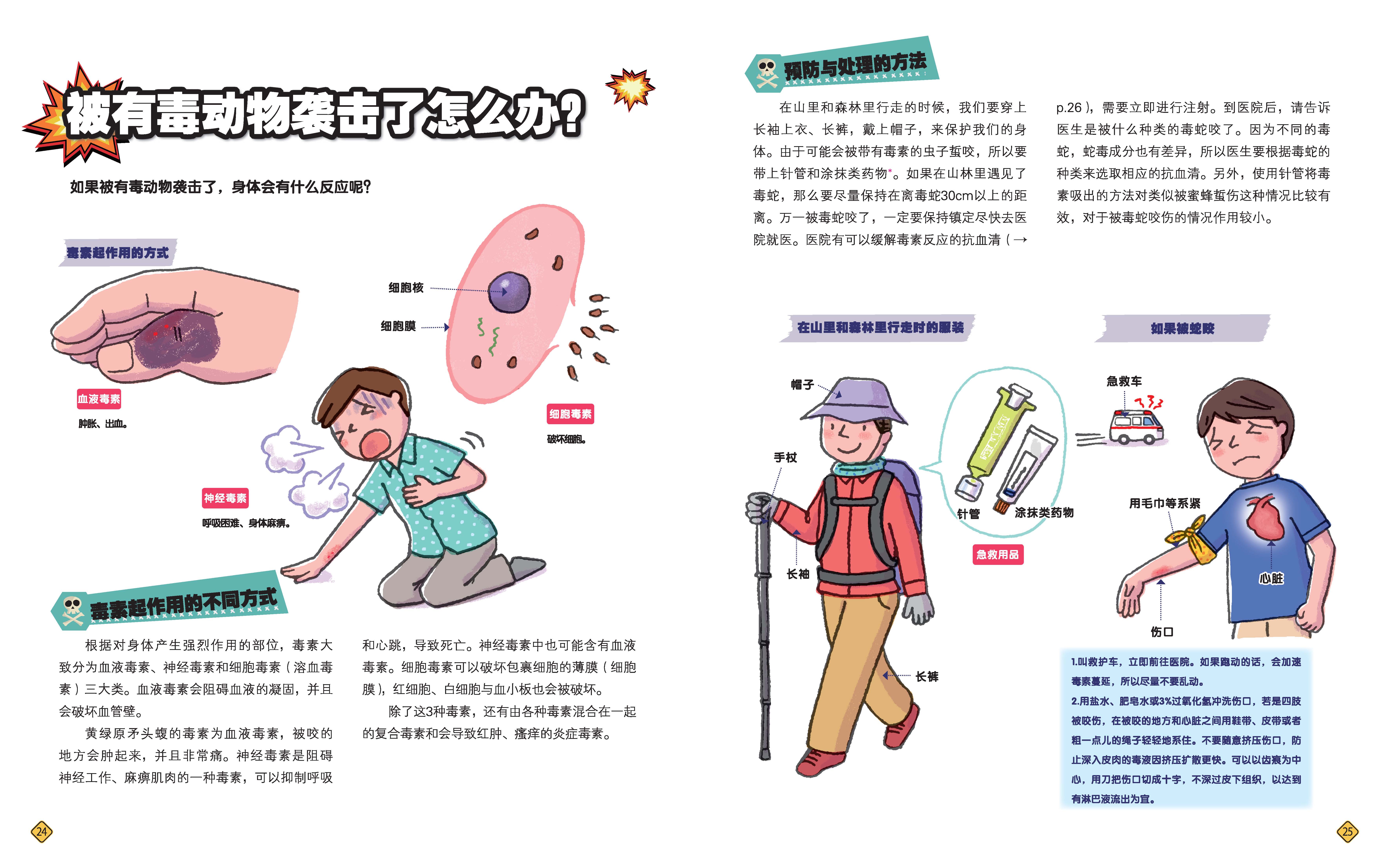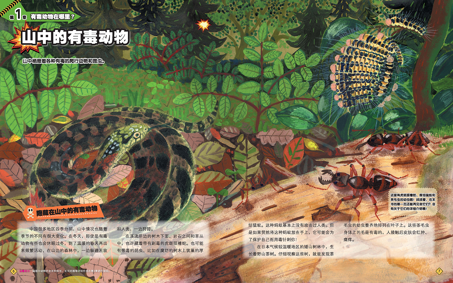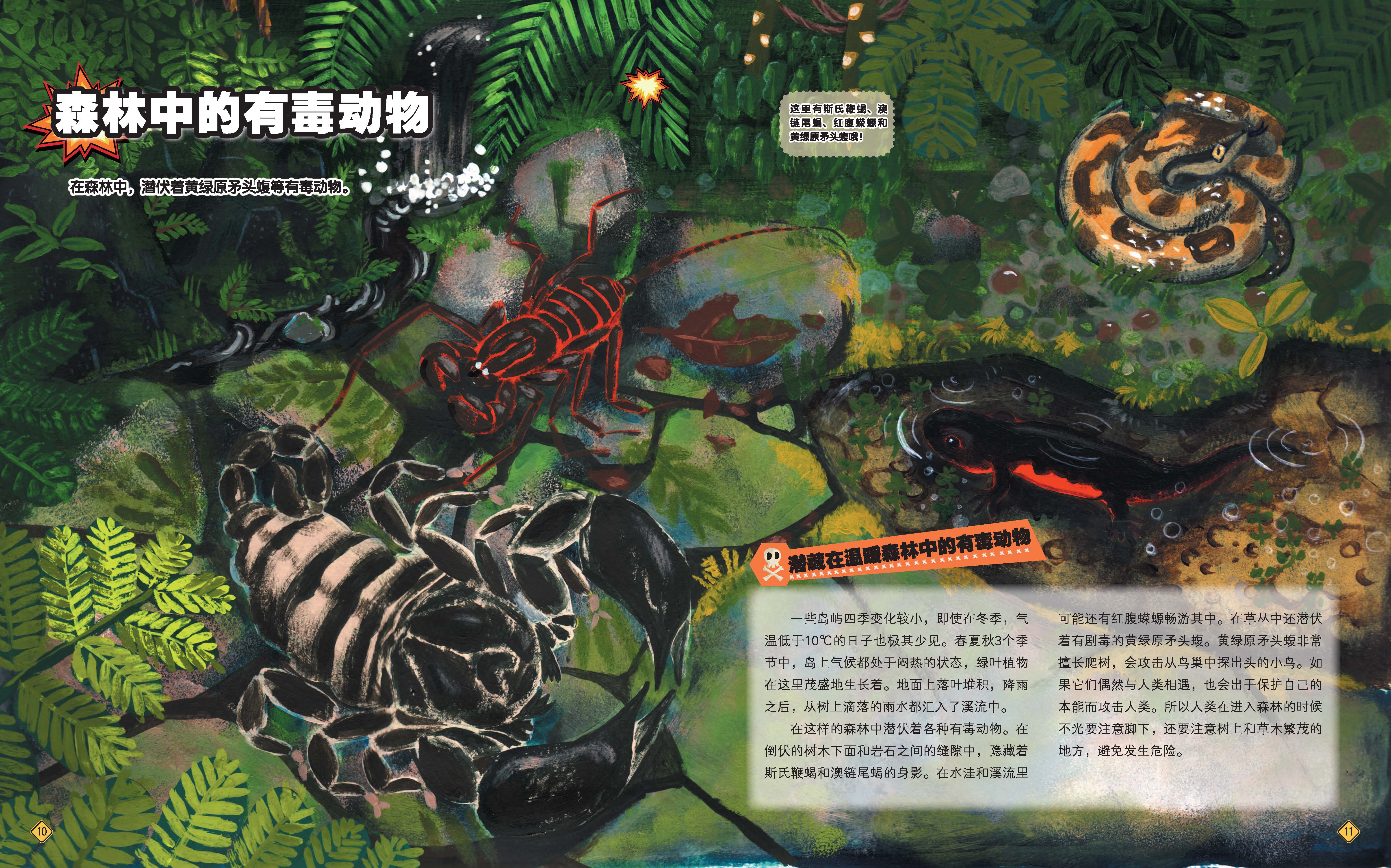 系彩绘+权威专家讲解+阅读中学习生物&化学知识点+急救措施小课堂,带你了解有毒动物背后的奇趣秘密!