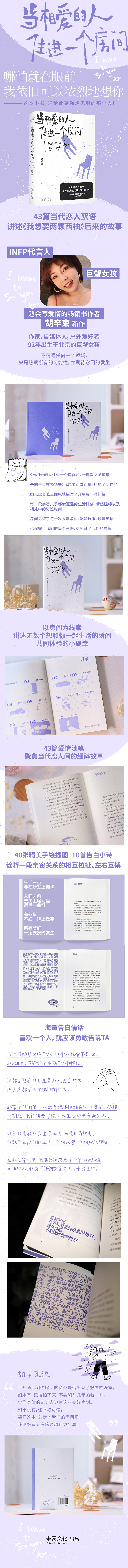 ☆I want to see you too!送给此刻你想见到的那个人! ☆大张伟、魏大勋都推荐她的爱情随笔!infj代言人、巨蟹女孩、会调配情感的畅销书作者胡辛束全新作品 ☆43篇真诚细腻的爱情随笔聚焦当代恋人间的细碎故事,争吵冷战