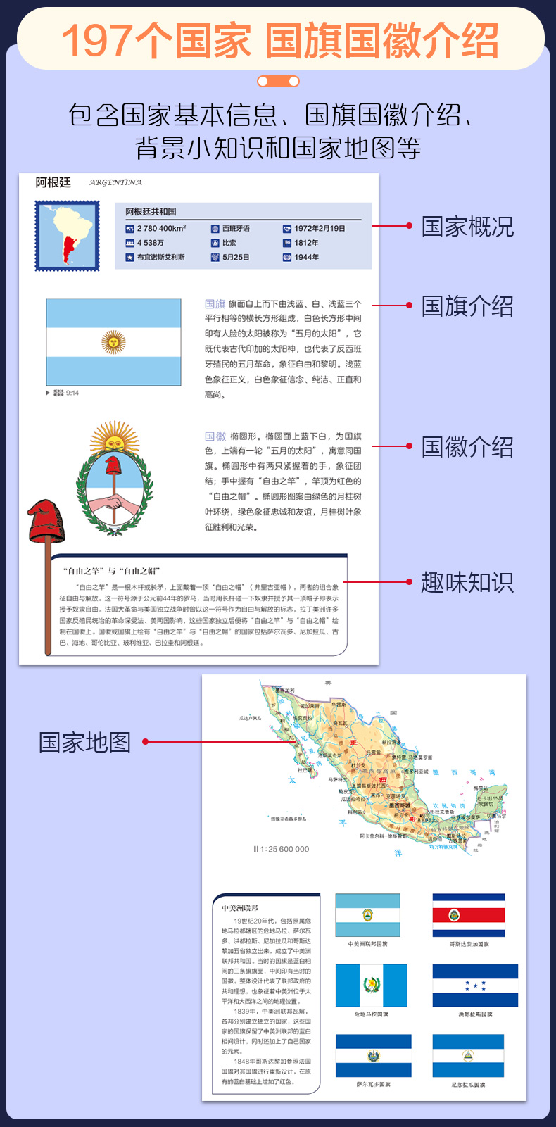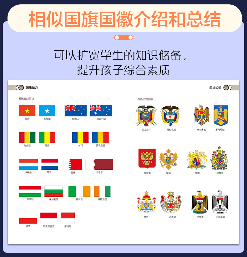 新版全彩印刷 世界国旗国徽地图册 趣味知识 学生科普工具书 各个国家国旗国徽详细介绍 蕴含的意义