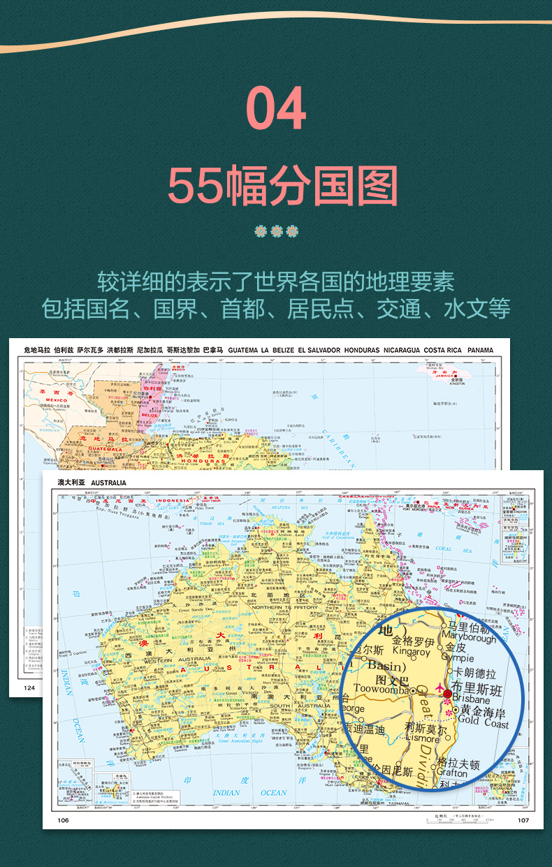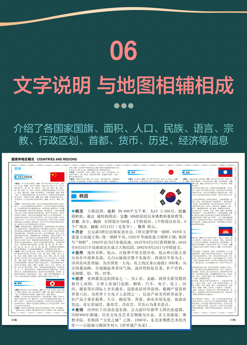 分洲分国地理要素国家概况 多幅地图展示详细文字说明 清晰易读易展开 实用性参考工具书