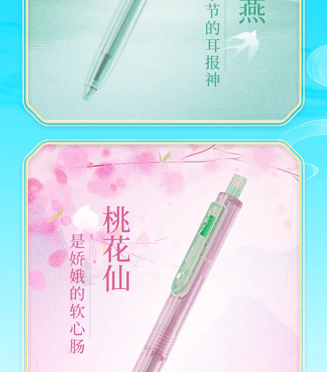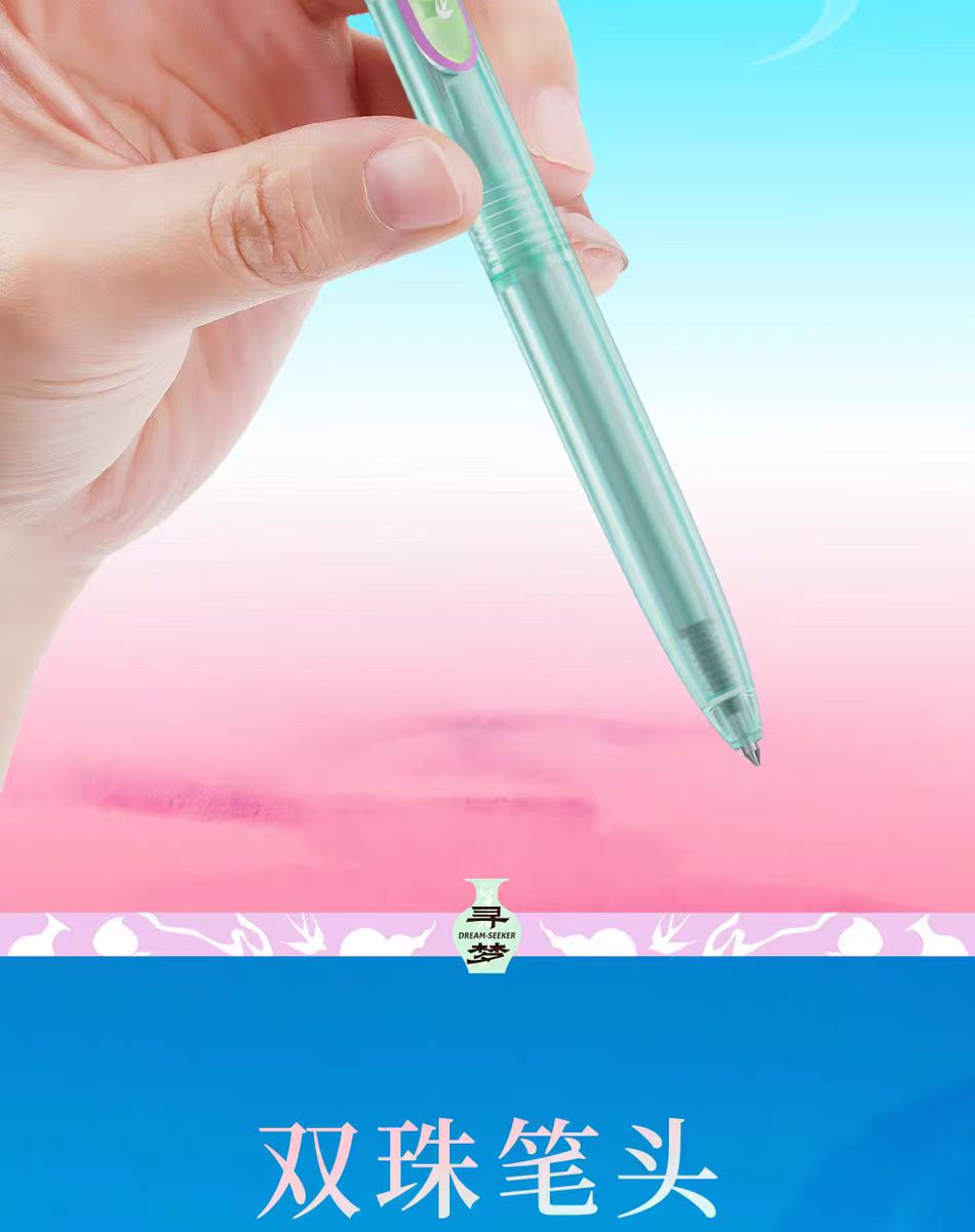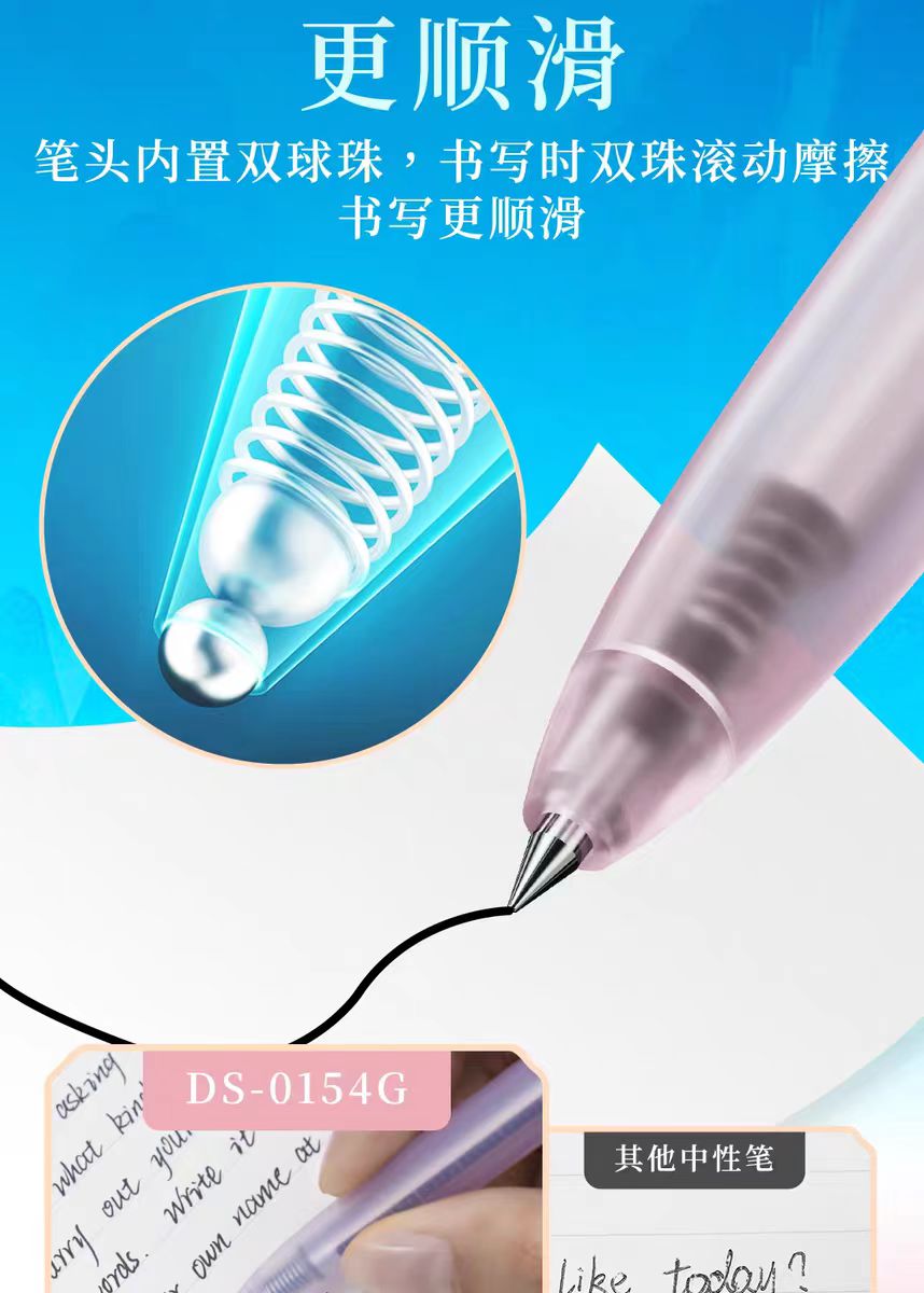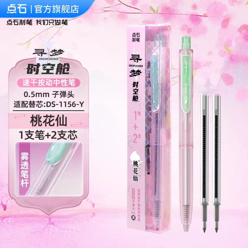 DS-0154G寻梦时空舱双珠速干按动中性笔精品装粉杆一桃花仙