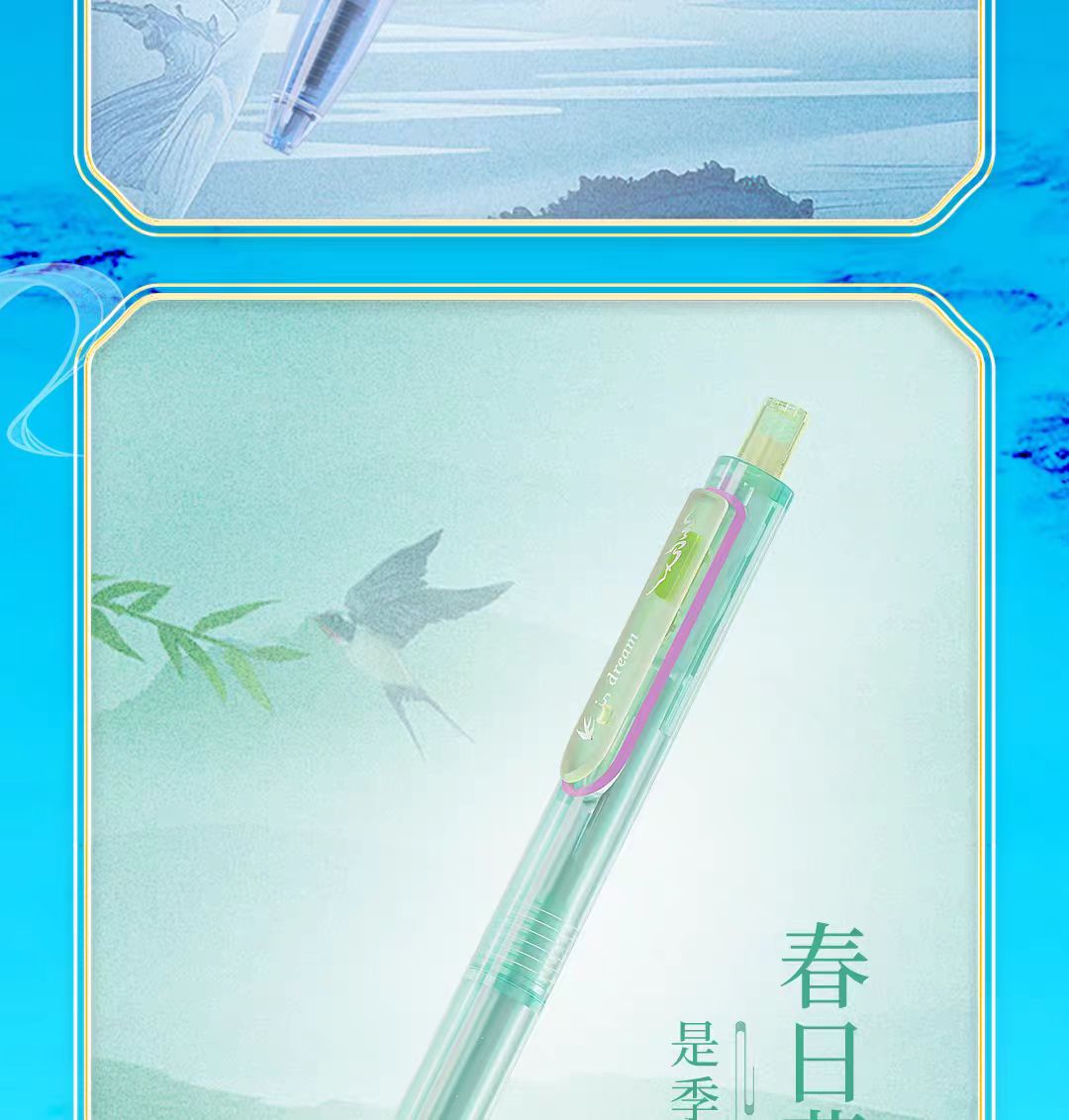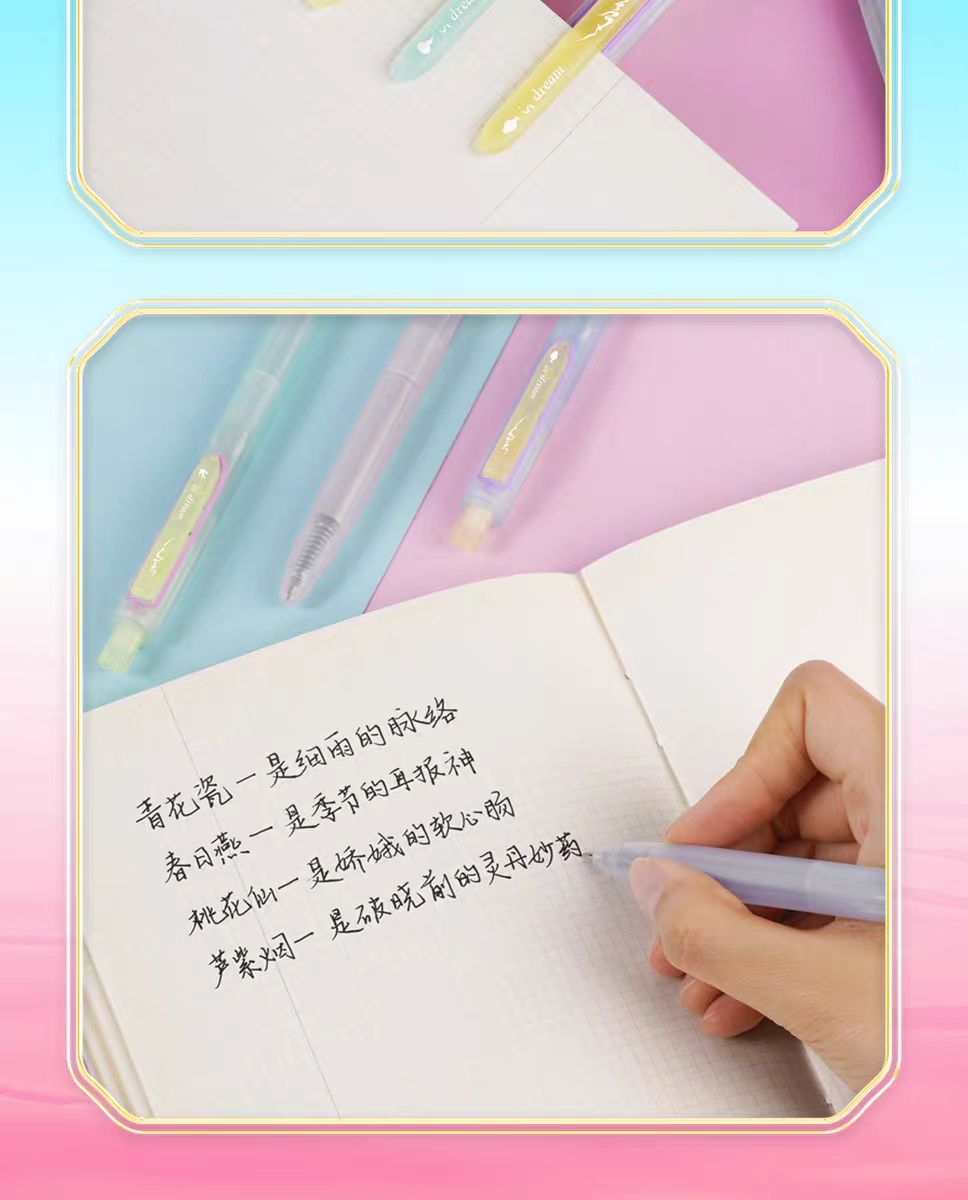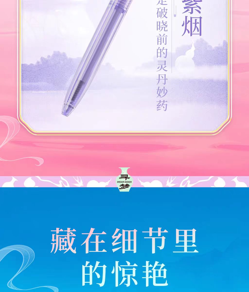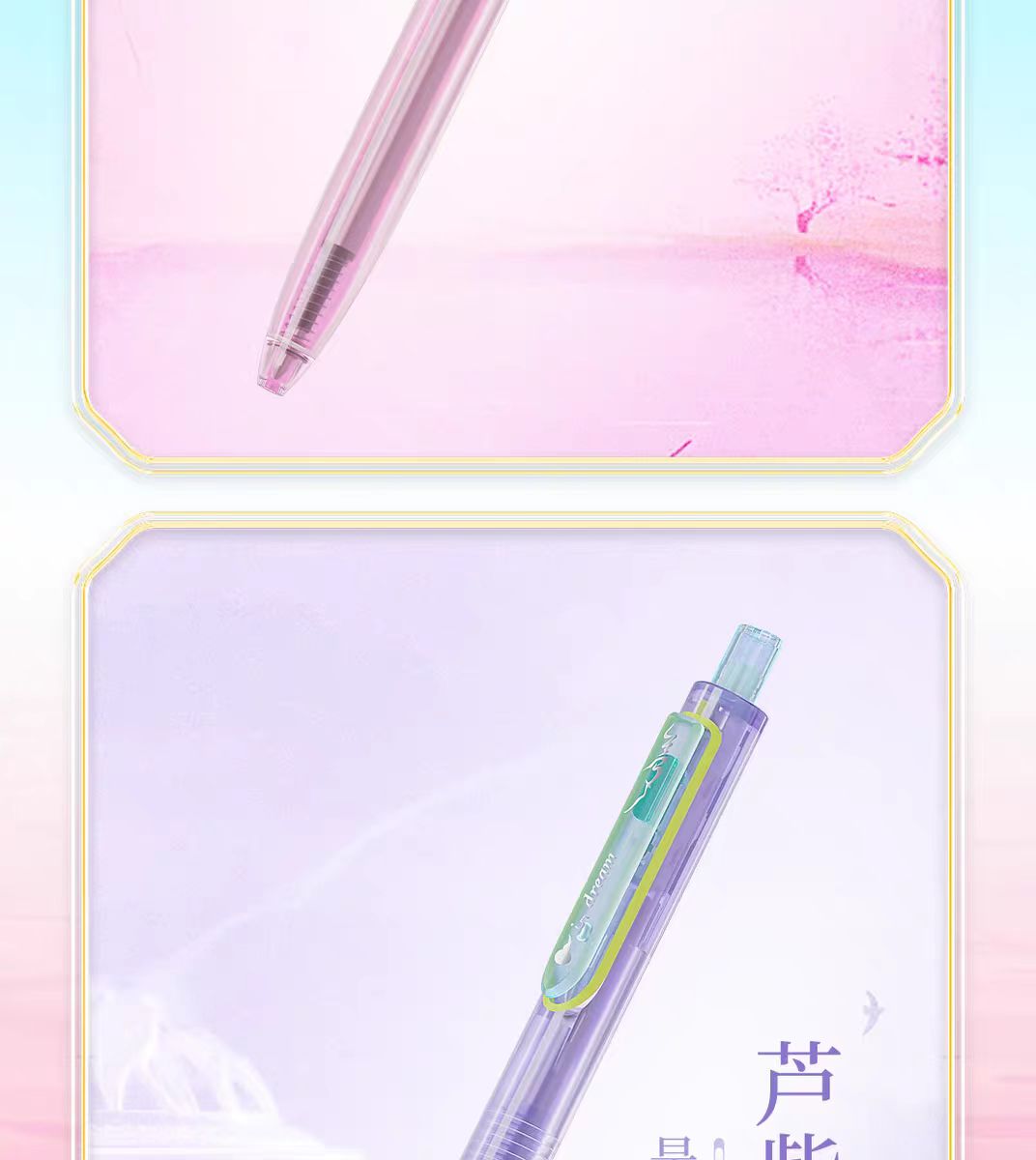 DS-0154G寻梦时空舱双珠速干按动中性笔精品装粉杆一桃花仙