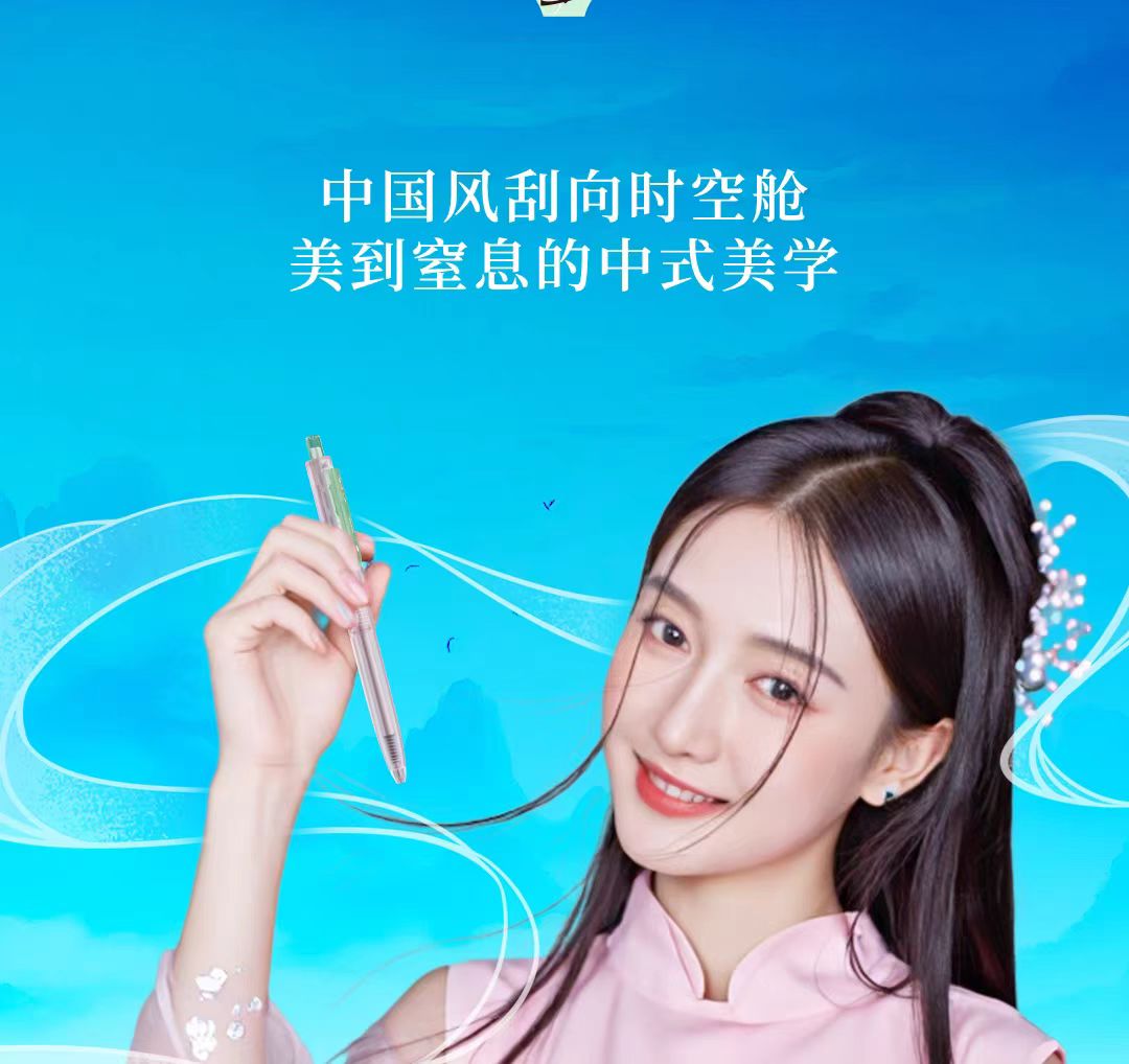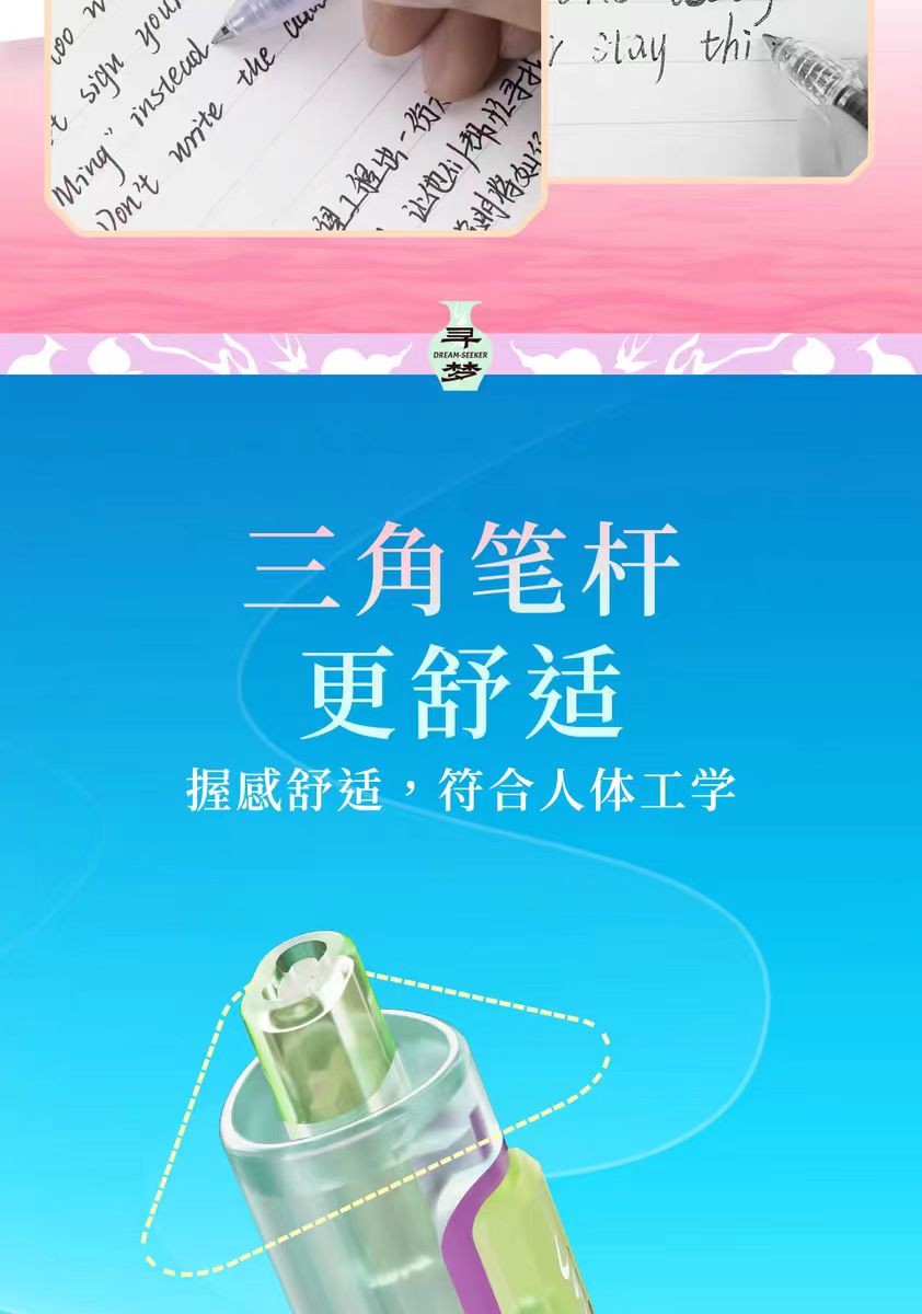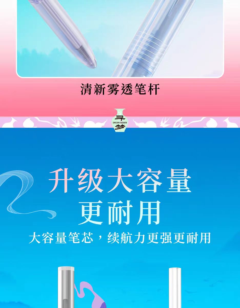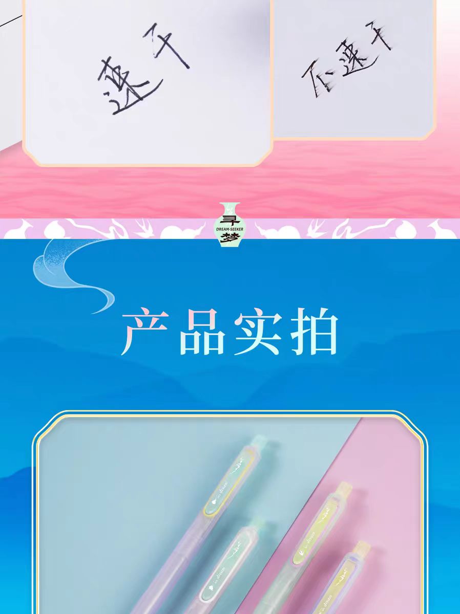 DS-0154G寻梦时空舱双珠速干按动中性笔精品装粉杆一桃花仙