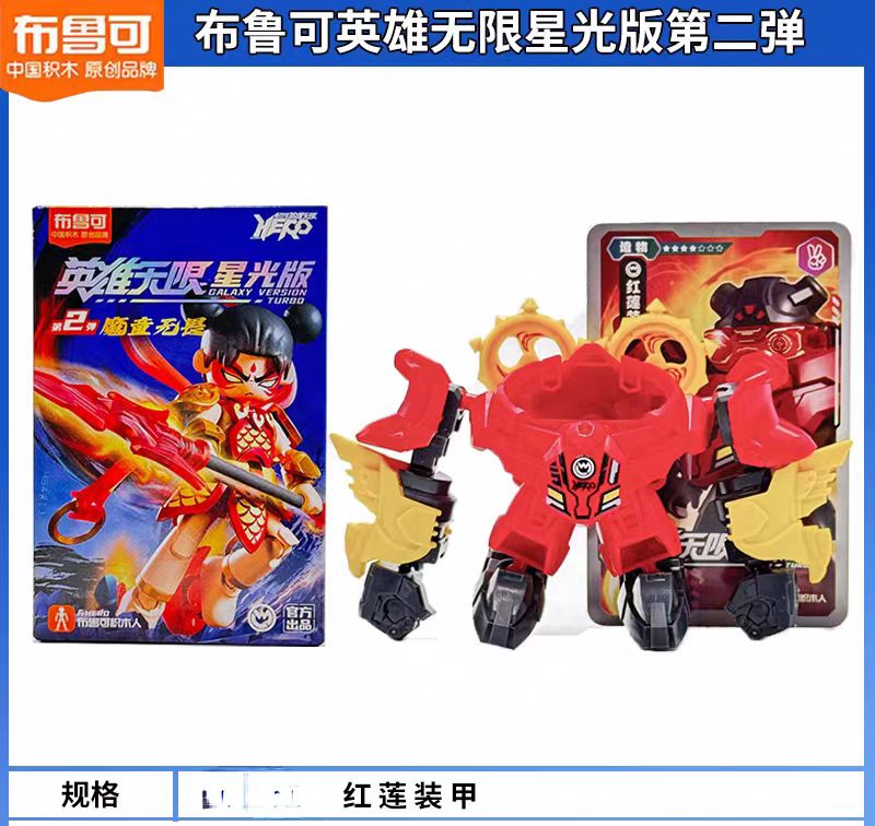 布鲁可战队积木冰蓝战锤赤红闪电玩具车