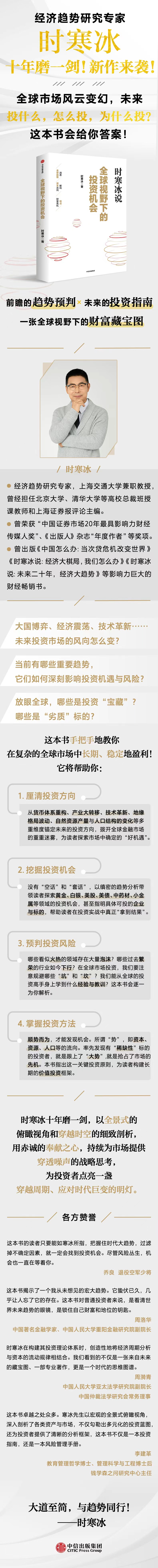 时寒冰十年磨一剑新作来袭!未来投什么 怎么投 为什么投 这本书会给你答案!助力读者在不确定的市场中赢得确定的收益,在实现财富增值的同时,构筑起牢不可破的财务“护城河”