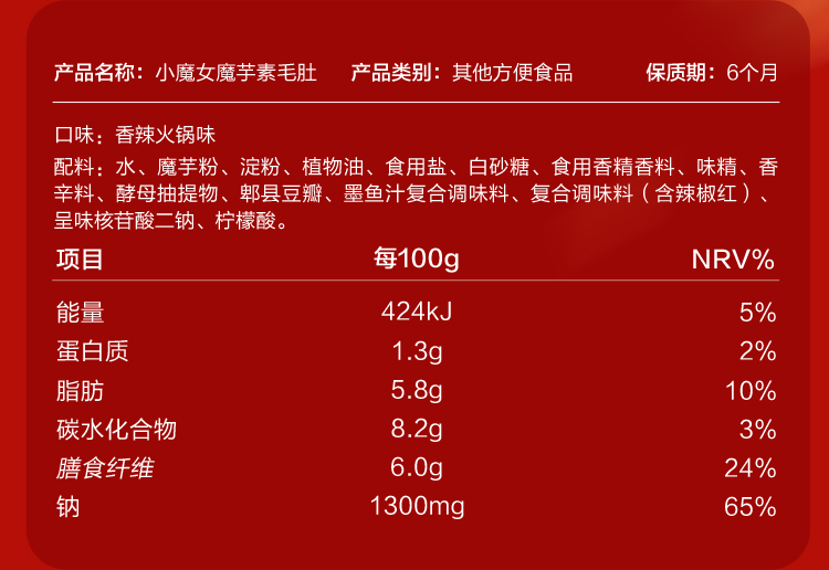 卫龙 小魔女香辣素毛肚80g*2袋装