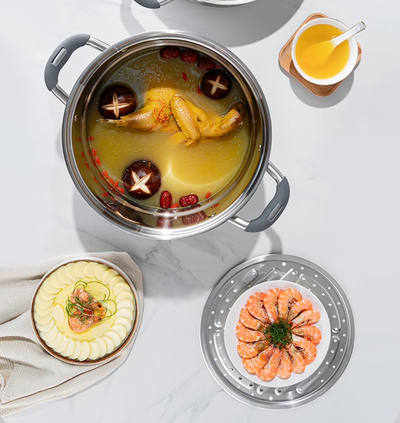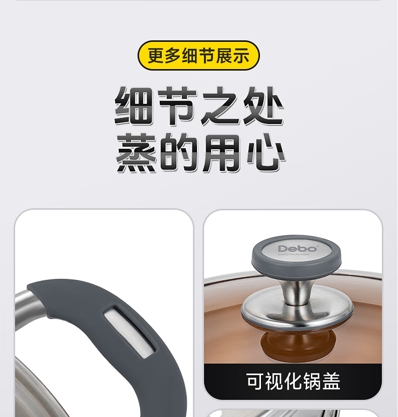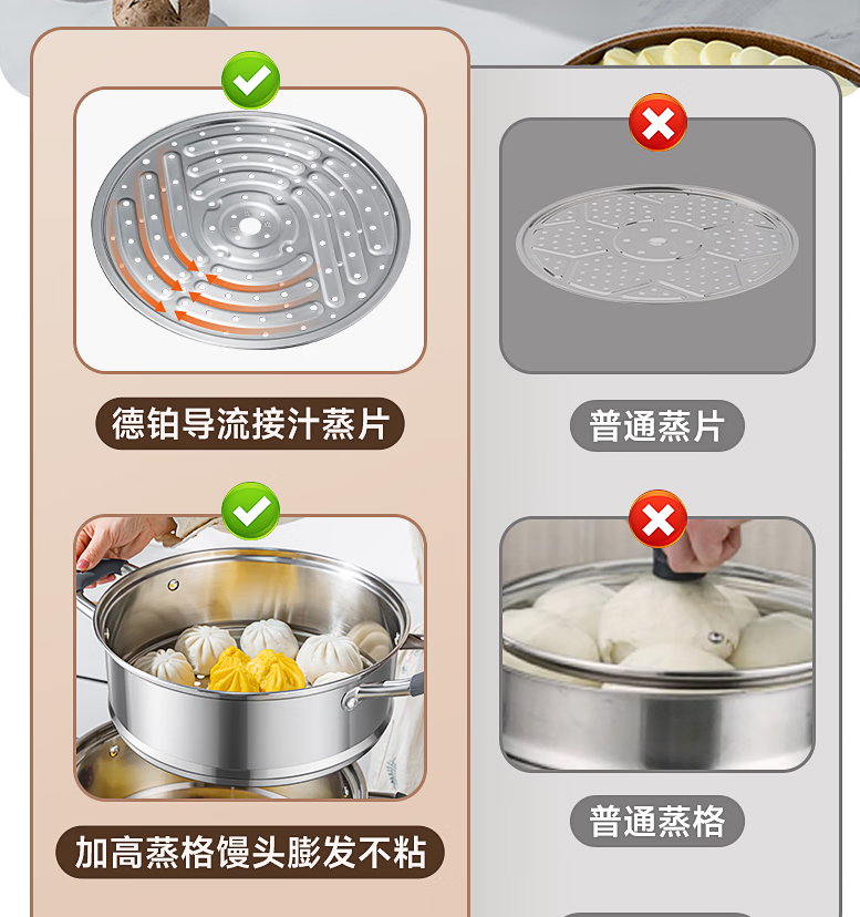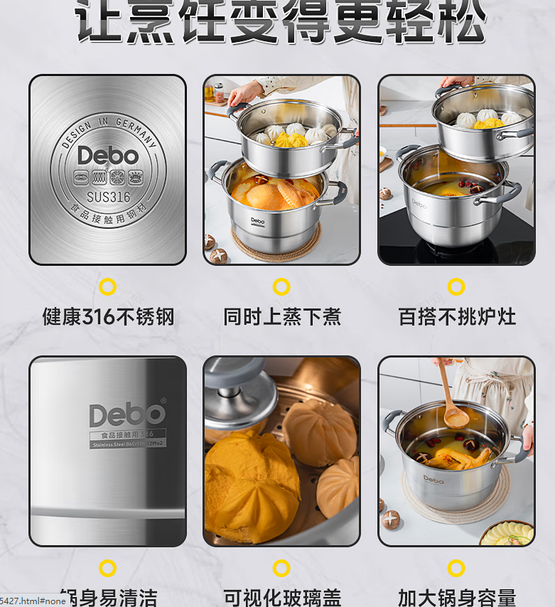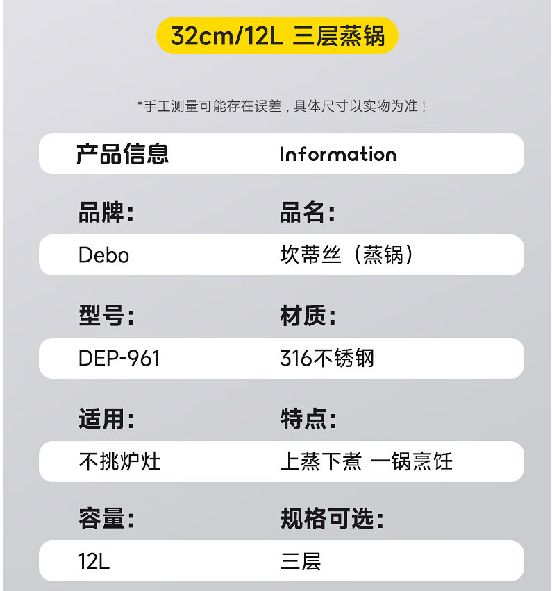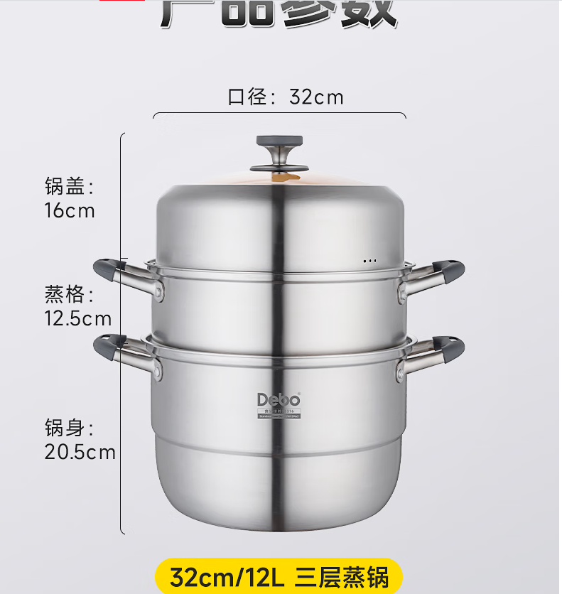 Debo德铂坎蒂丝32厘米316钢一体成型防干烧蒸锅DEP-961