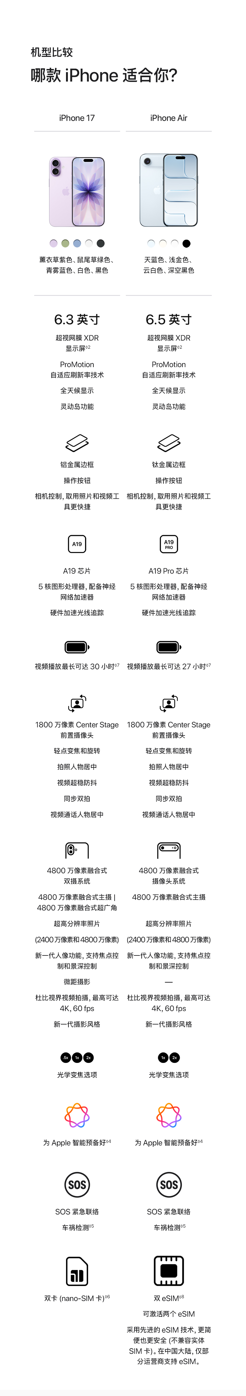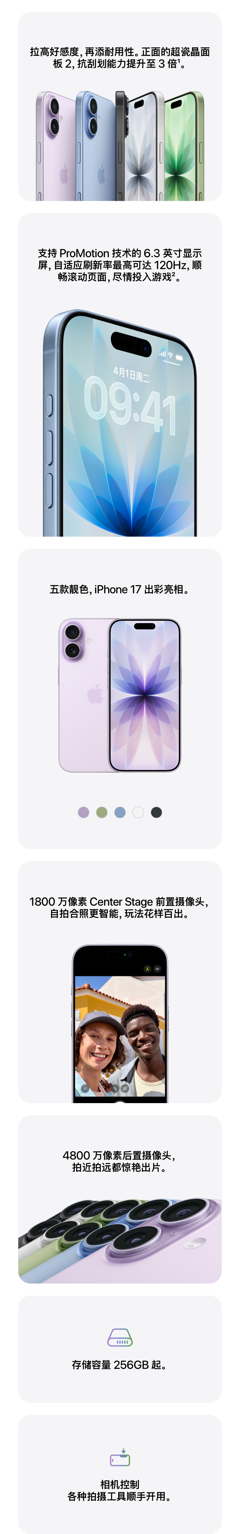 Apple/苹果 iPhone 17 紫色/绿色/蓝色/白色/黑色