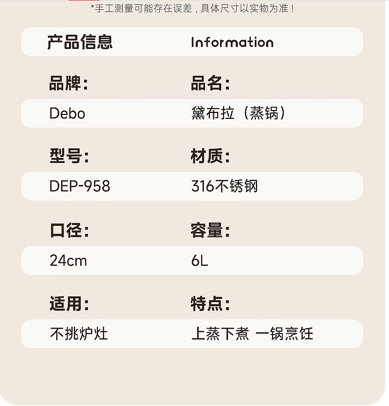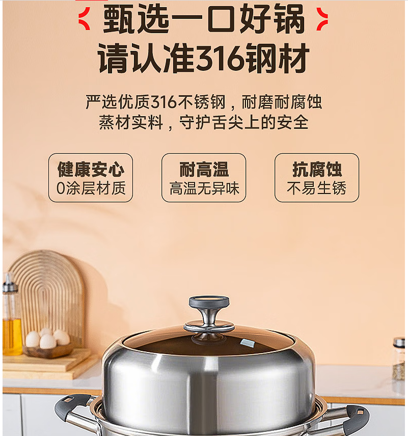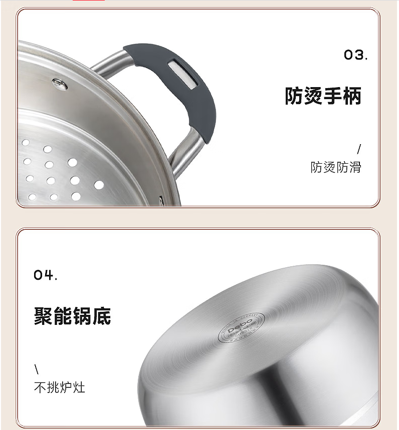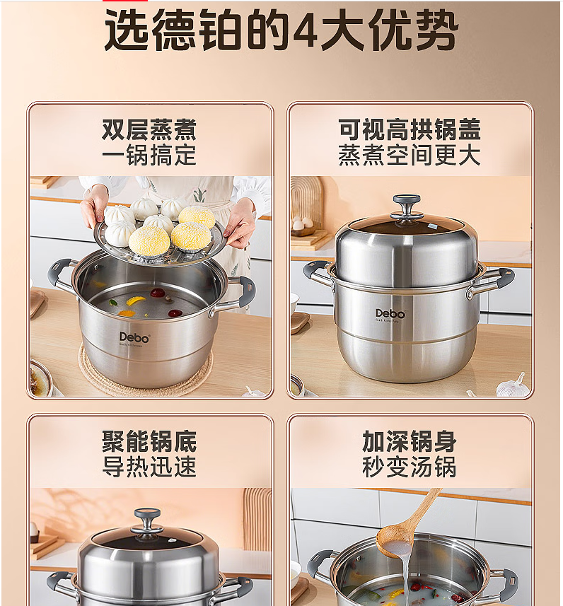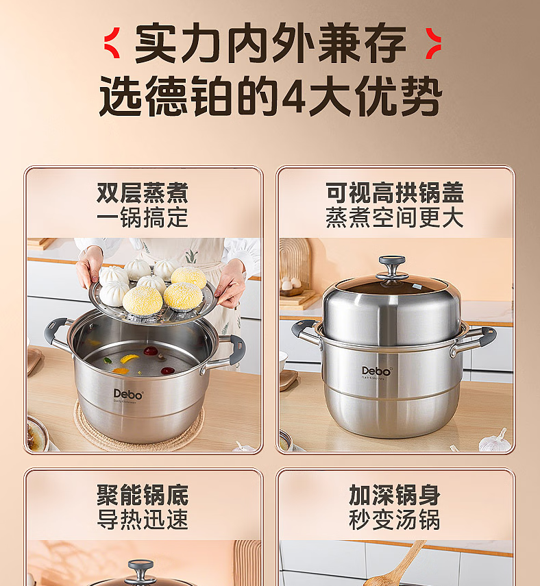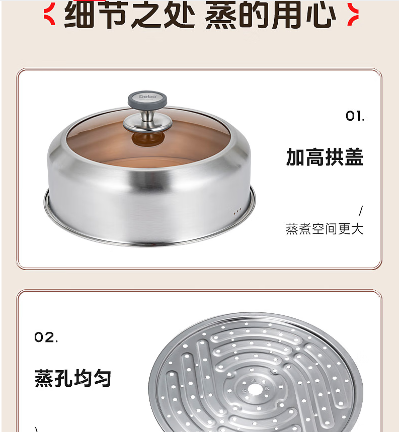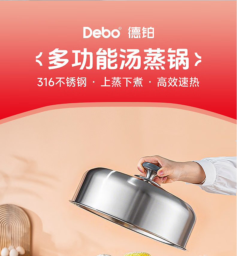 Debo德铂黛布拉316不锈钢双层蒸锅24cm DEP-958