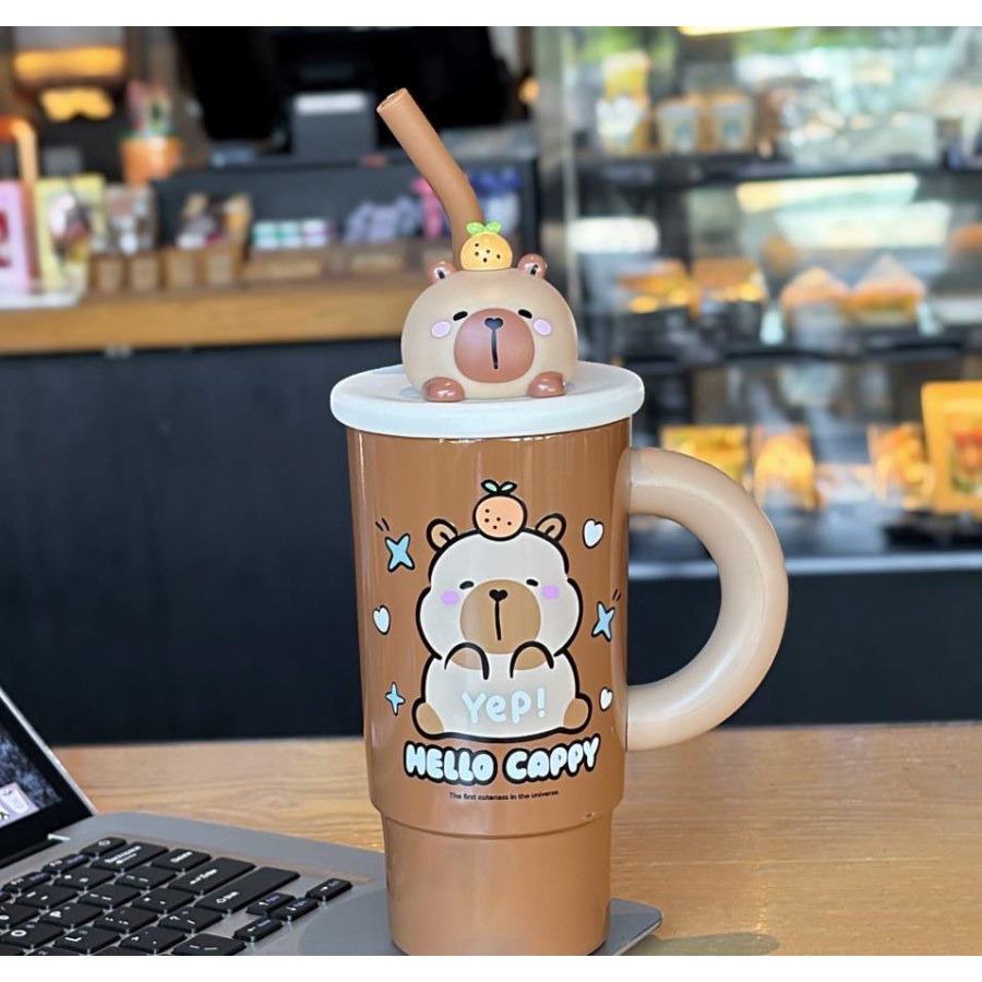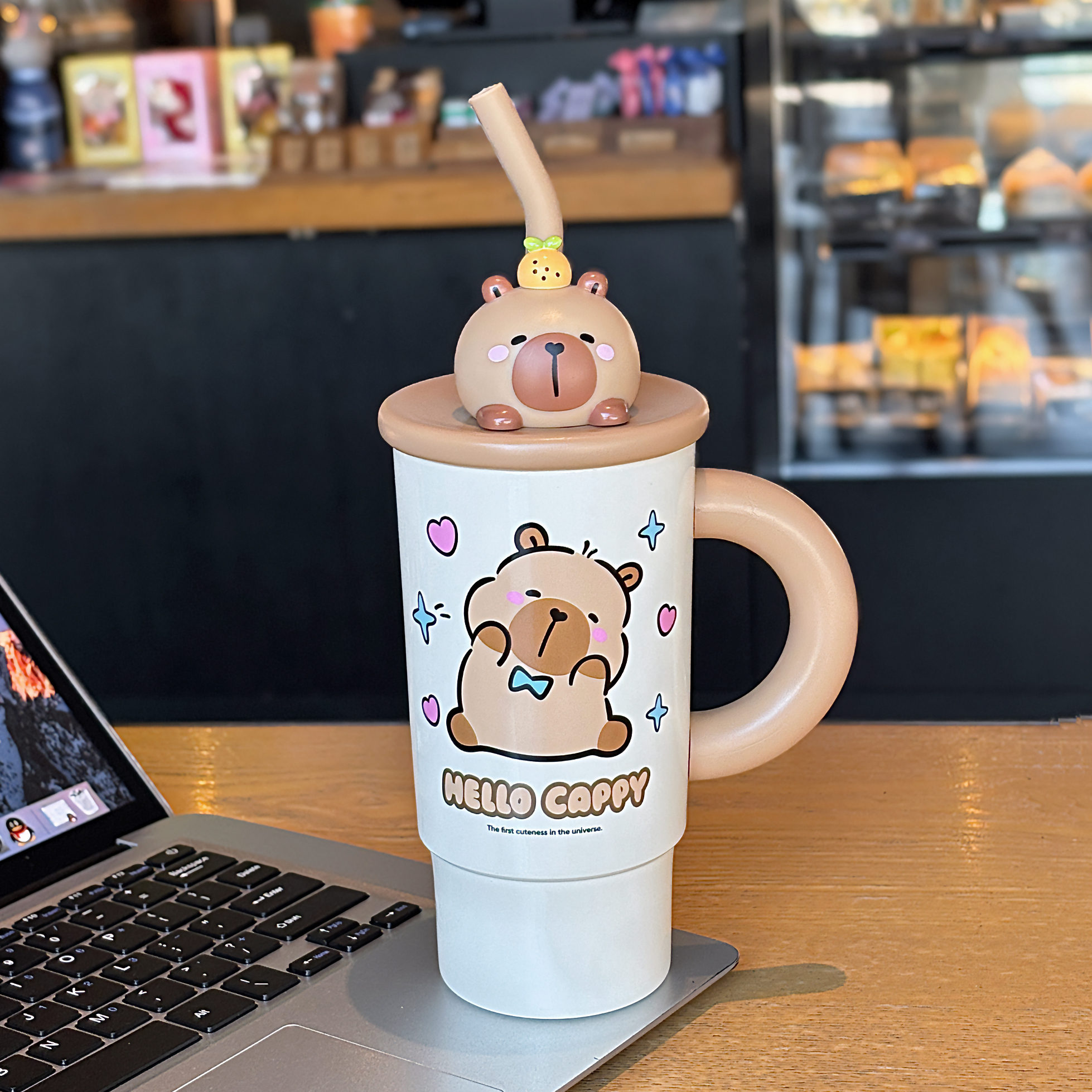 CH-8519卡皮巴拉搪胶桌面手柄杯575ml(深咖)