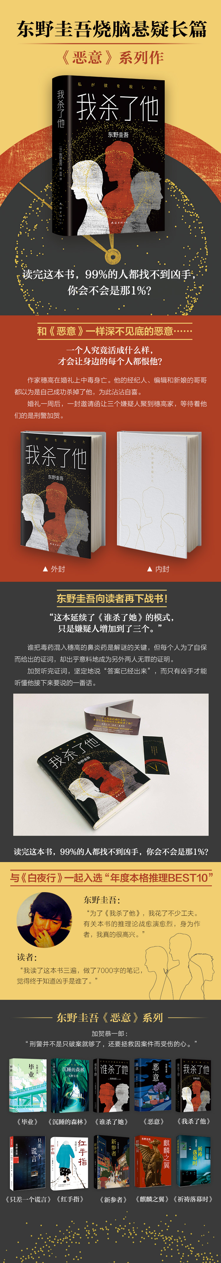 《我杀了他》是东野圭吾的烧脑悬疑长篇小说,《恶意》系列作,与《白夜行》一起入选日本年度本格推理BEST10榜单