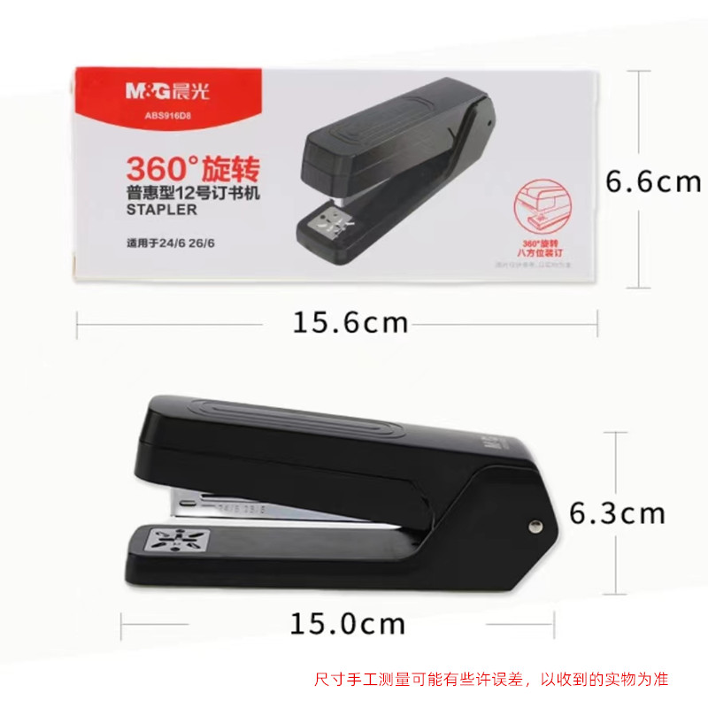 晨光普惠型360°旋转12号订书机黑ABS916D8