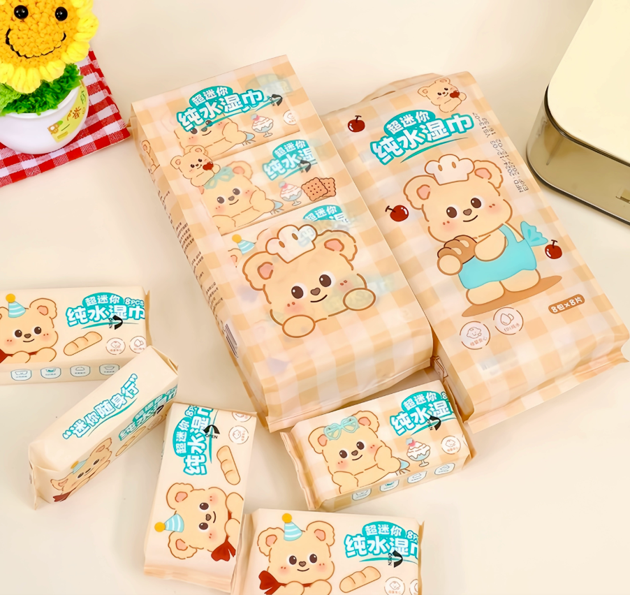 CSJ-076(8片*8包)甜品熊系列迷你手口纯水湿巾