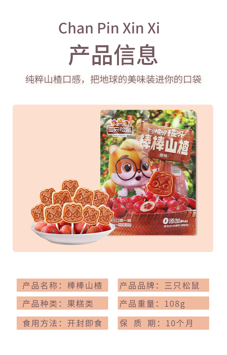 三只松鼠棒棒山楂糖108g*3袋