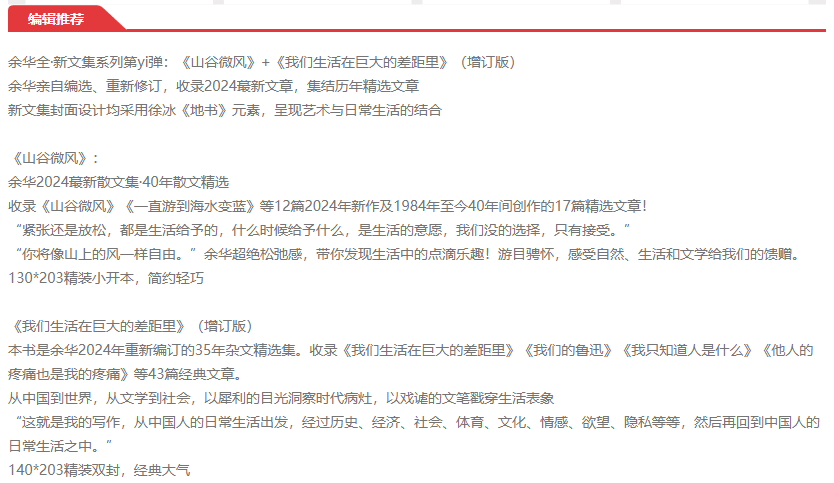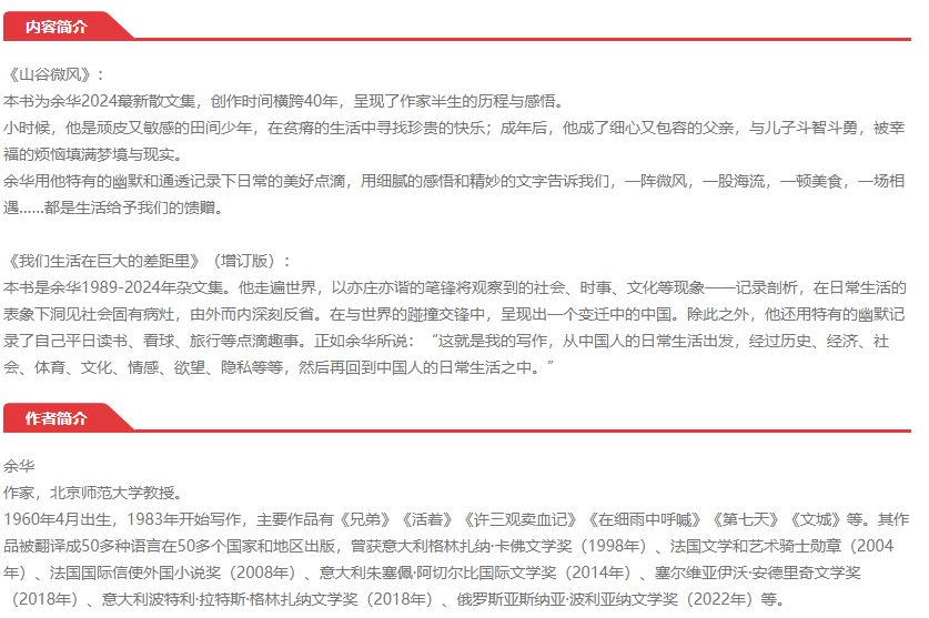 余华 山谷微风 我们生活在巨大的差距里 共2册 收录新作 经典名篇
