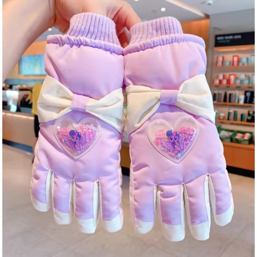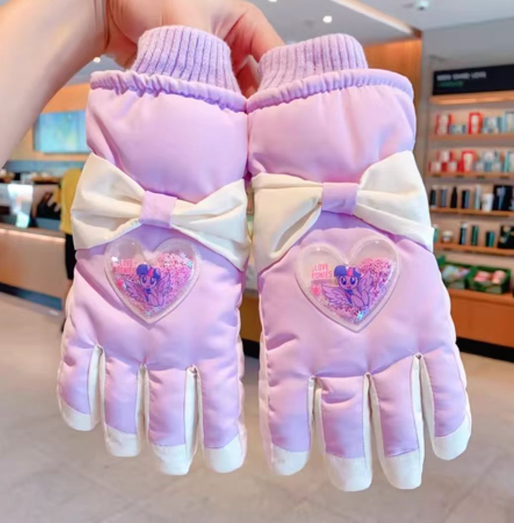 C5788中童小马爱心蝴蝶结滑雪五指IP手套(紫色爱心流沙)