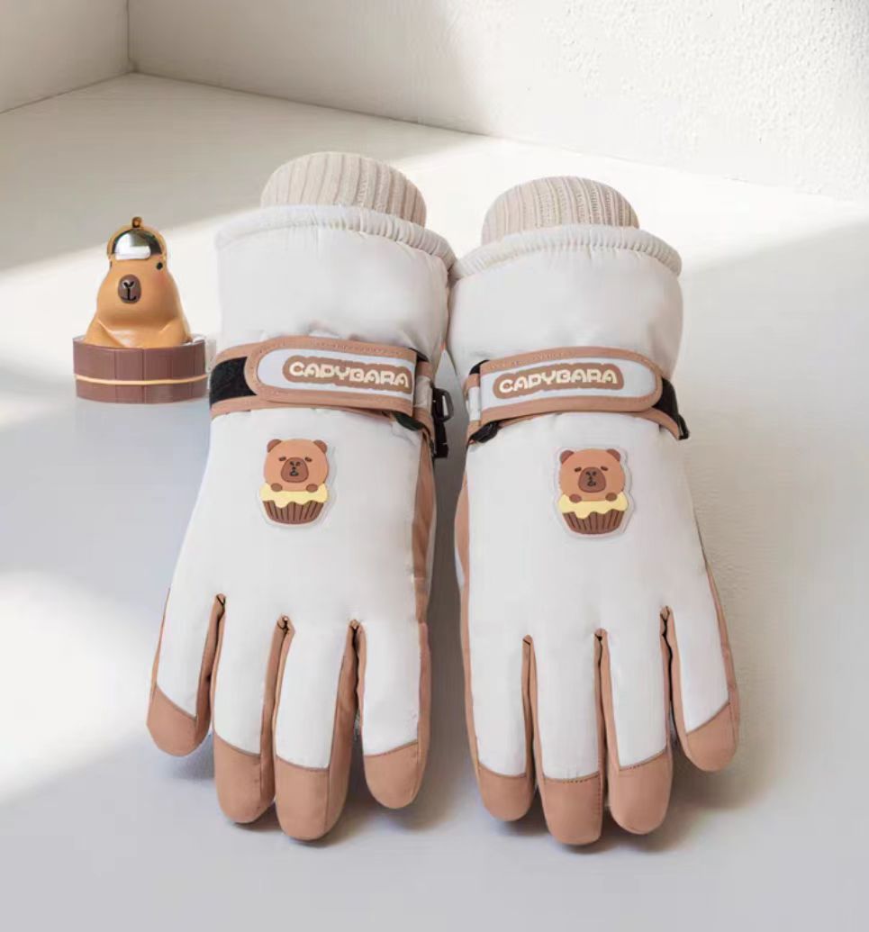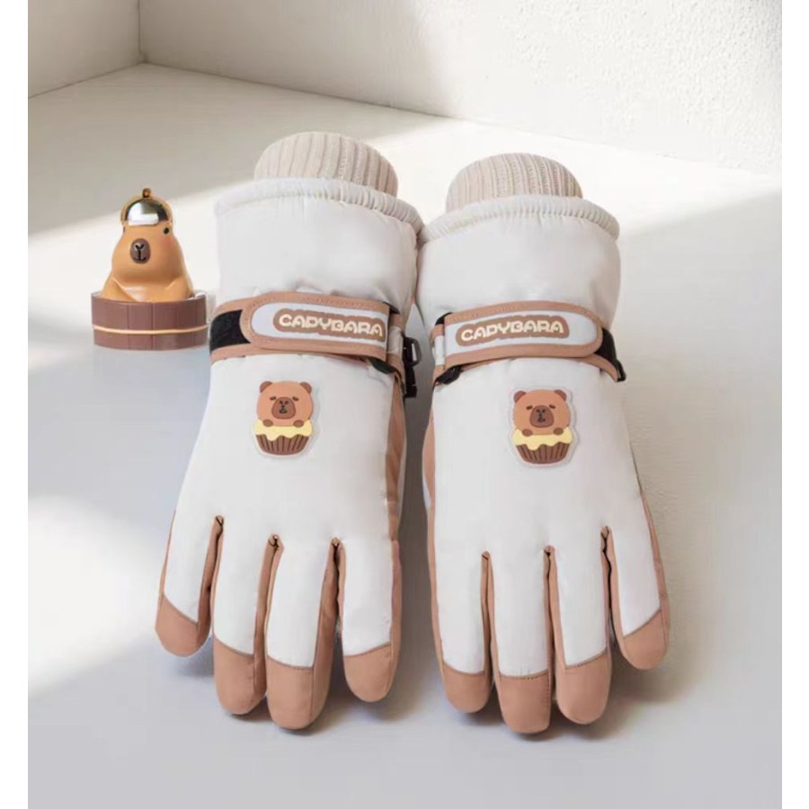 C5859大童蛋糕豚豚滑雪五指手套-奶白色