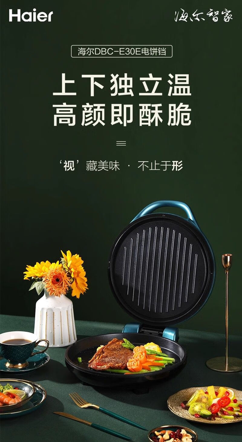 海尔家用电饼铛三种模式双面煎烤烙饼机 DBC-E30E