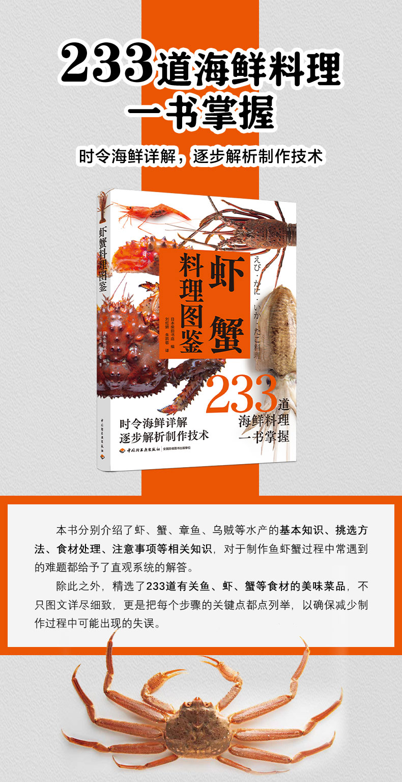 虾蟹料理图鉴 233道海鲜料理一书掌握。时令海鲜详解,逐步解析制作技术。