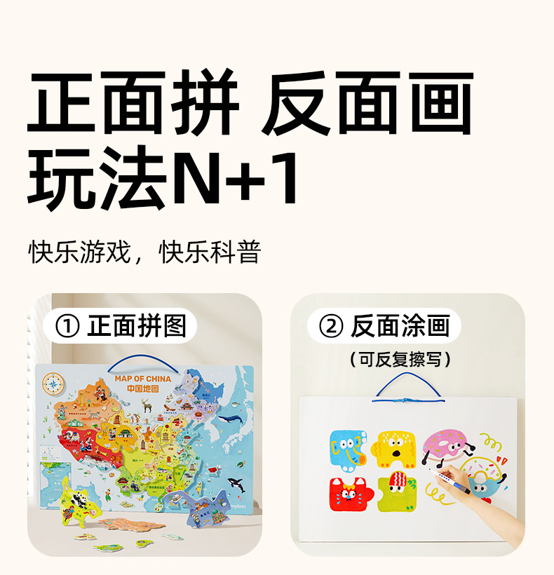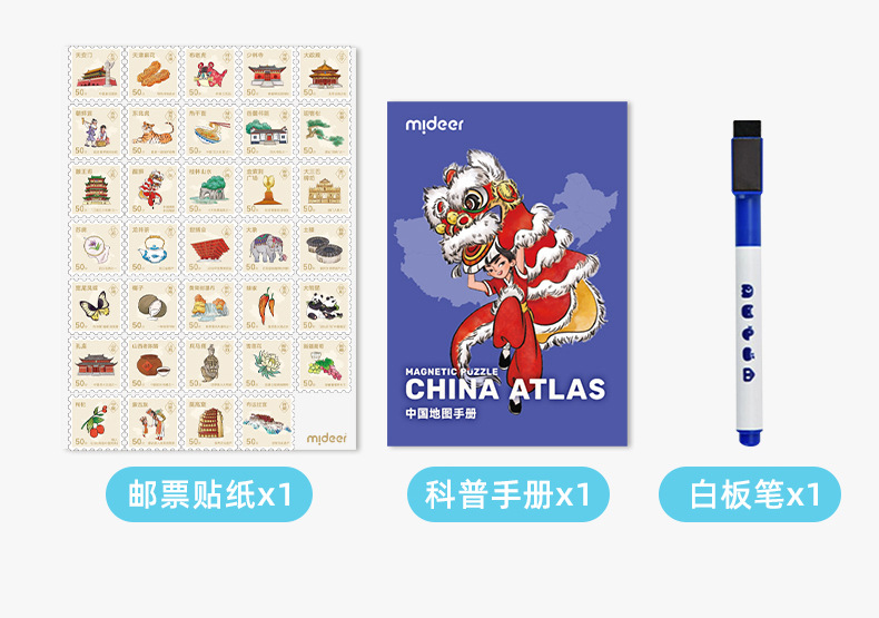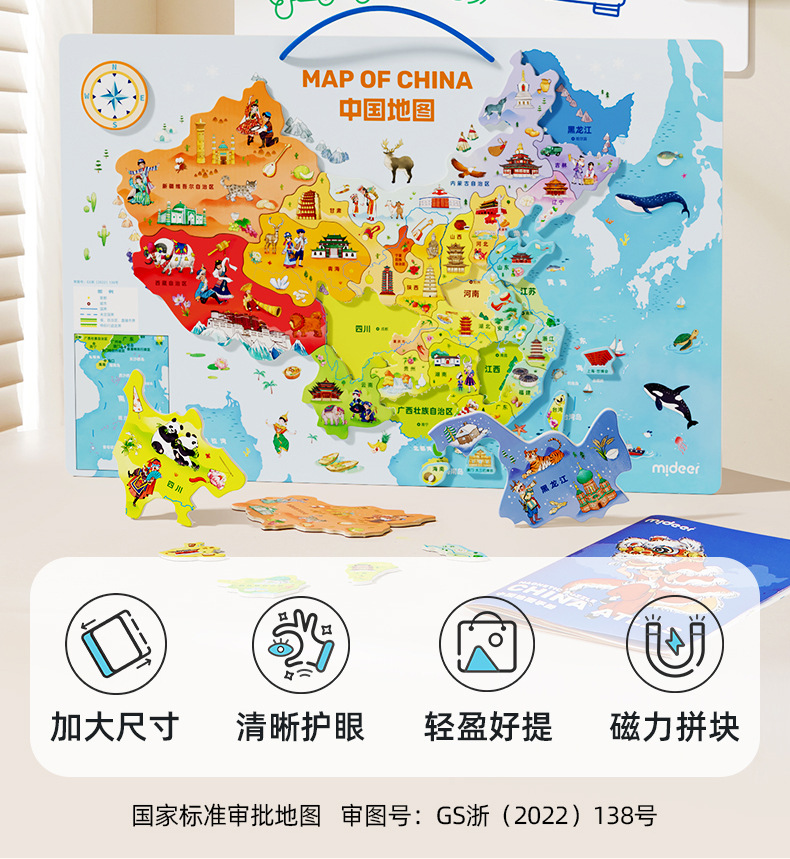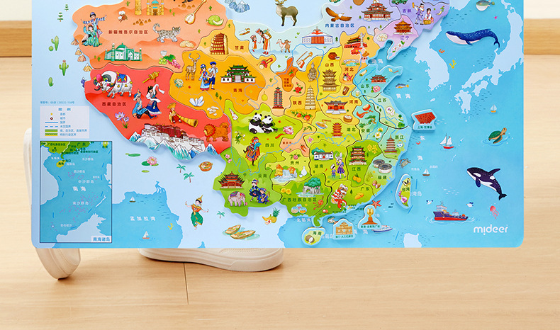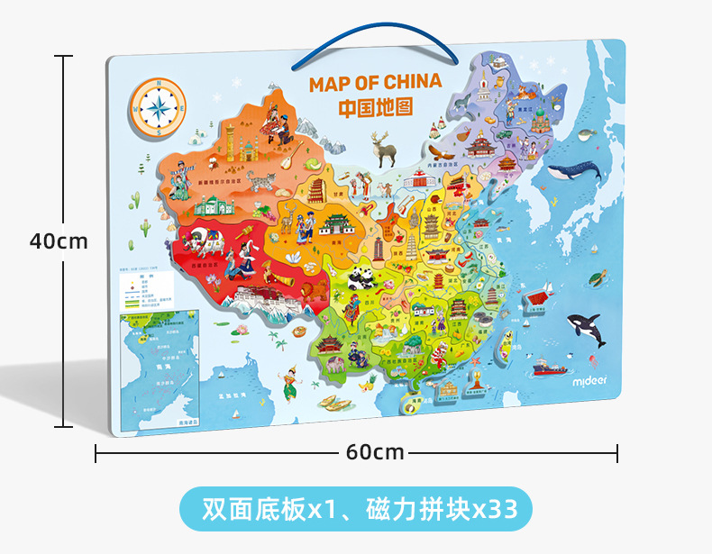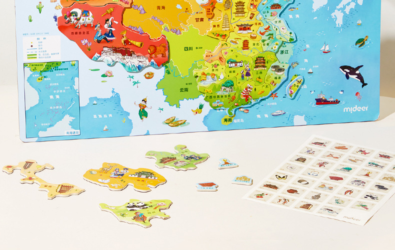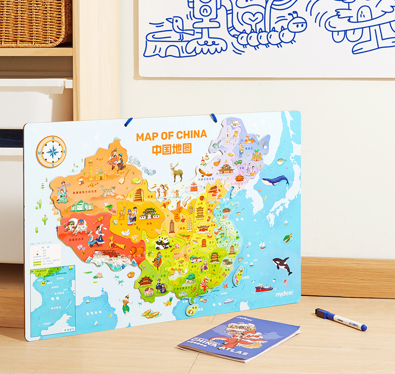 mideer弥鹿中国世界地图磁吸力拼图儿童版积木质益智玩具