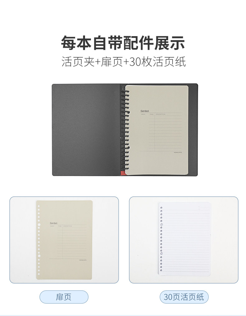 国誉WCN-FR0031N黑B5-30页Gambol活页本