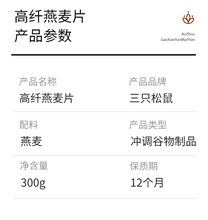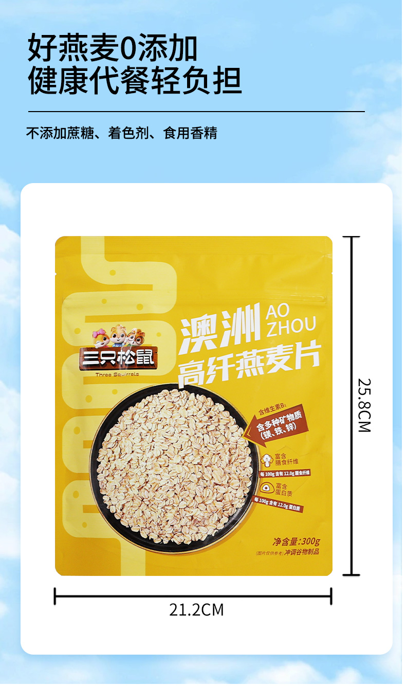 三只松鼠澳洲高纤燕麦片300gX1袋