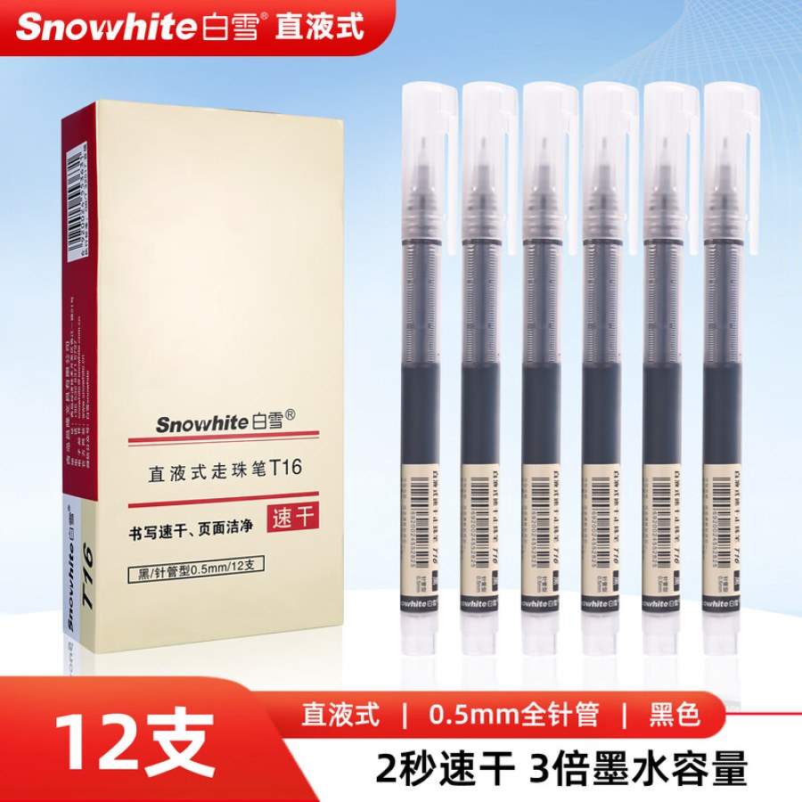 B 白雪 直液式走珠笔 针管笔 中性笔 水笔 签字笔 走珠笔 学生考试笔 黑色 12支/盒T16