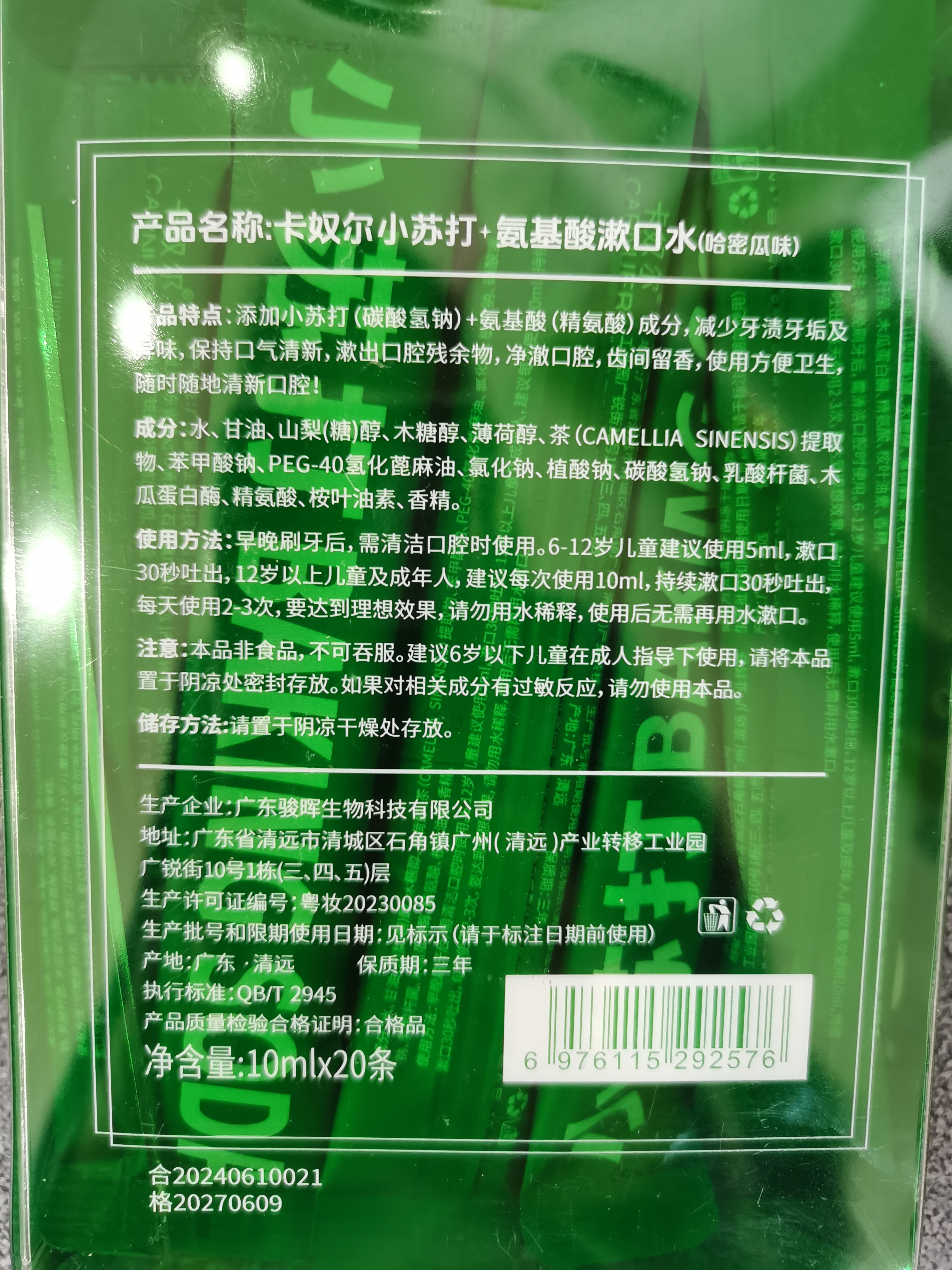 卡奴尔小苏打+氨基酸漱口水(哈密瓜味)10ml*20条
