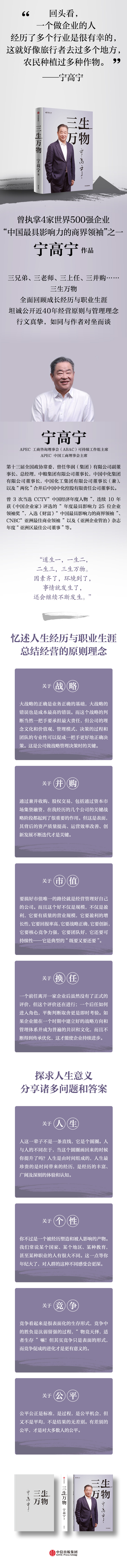 曾执掌多家世界500强企业的知名企业家宁高宁亲笔著述,真诚回顾成长经历与职业生涯,坦诚公开近40年经营原则与管理理念,内容涵盖企业上市、兼并重组、团队整合、人才培养激励等诸多议题