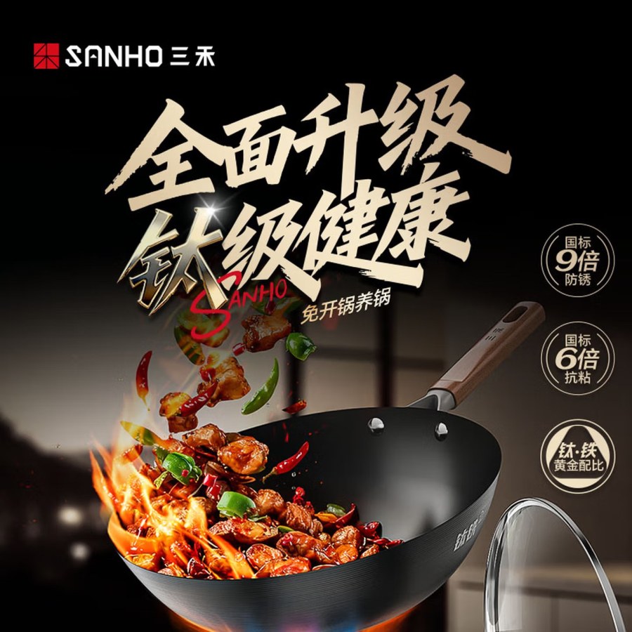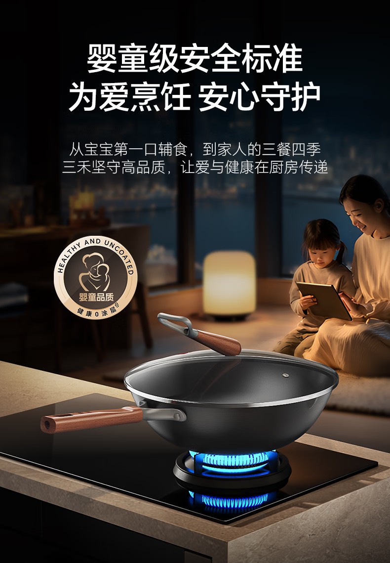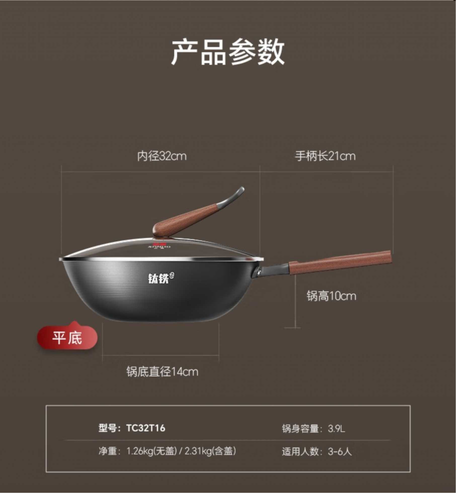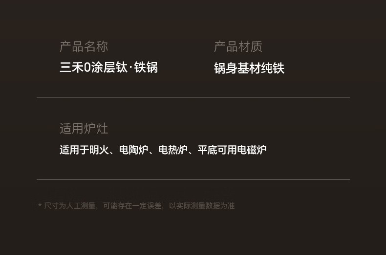 三禾0涂层钛铁锅32cm(平底)TC32T16