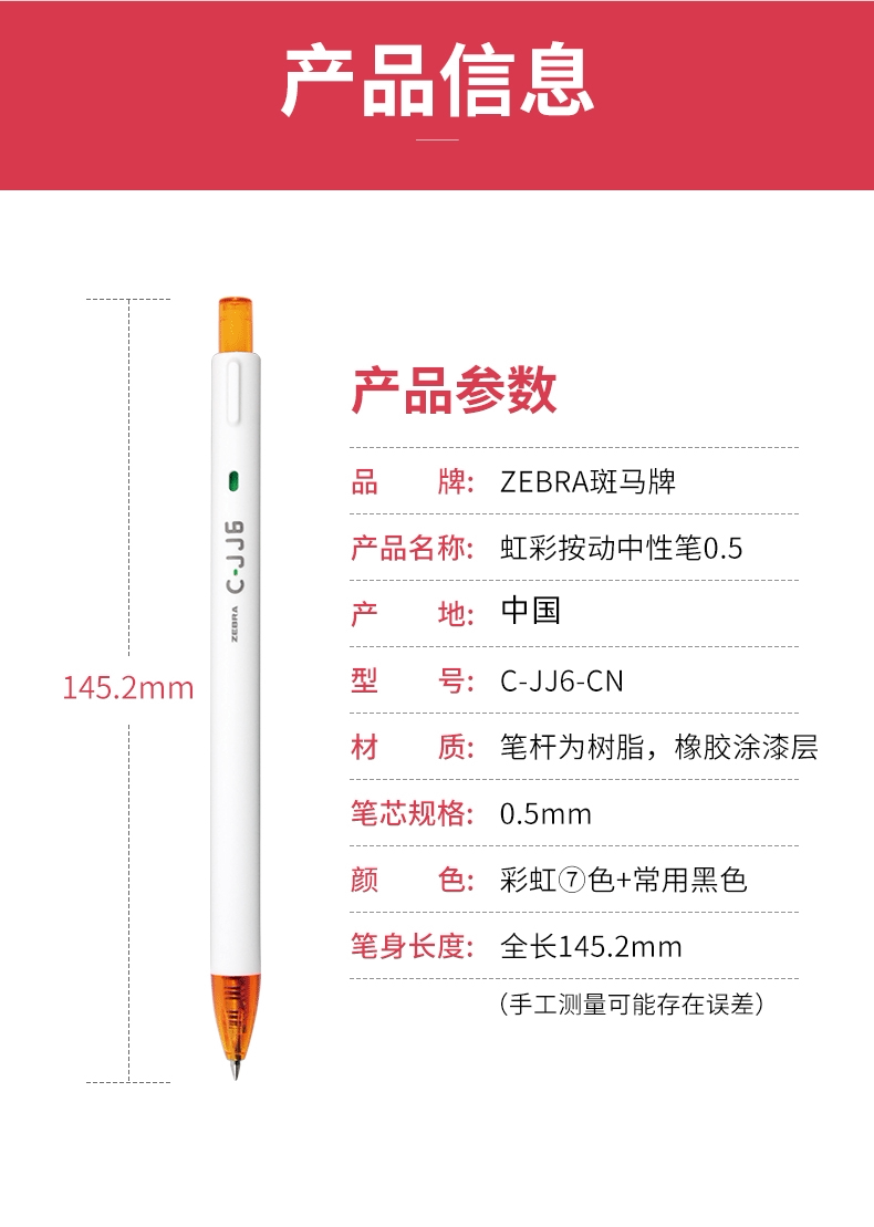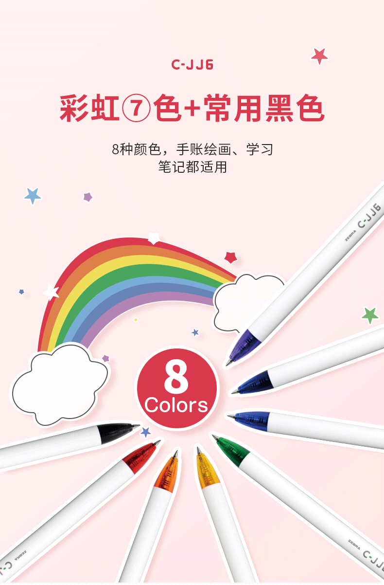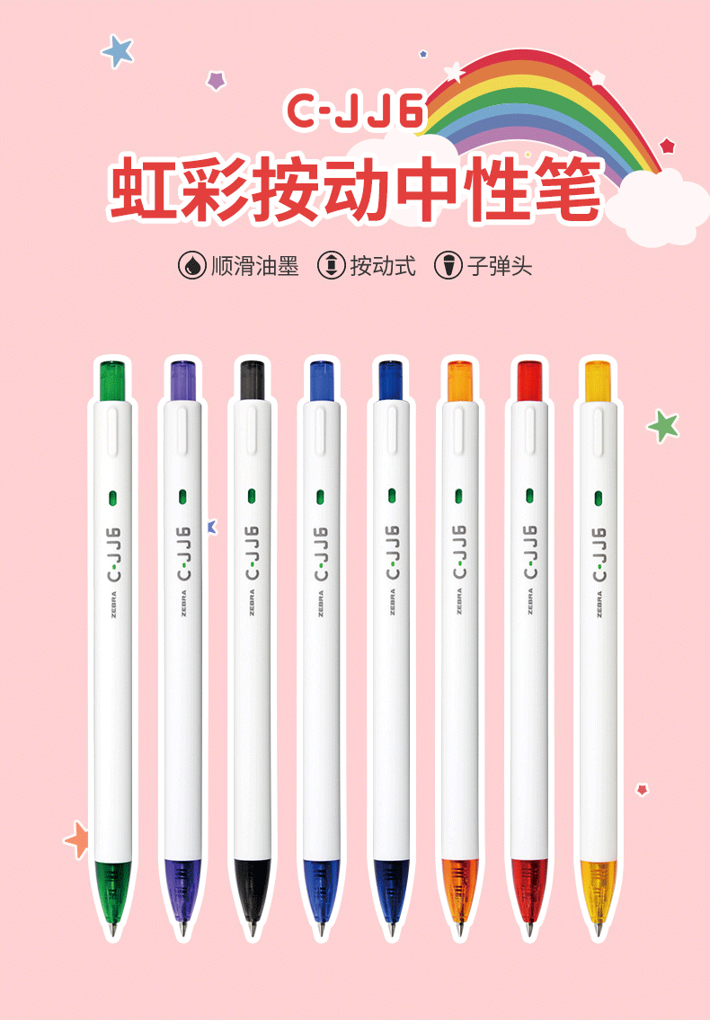 斑马C-JJ6-CN-BK彩虹按动中性笔0.5黑色
